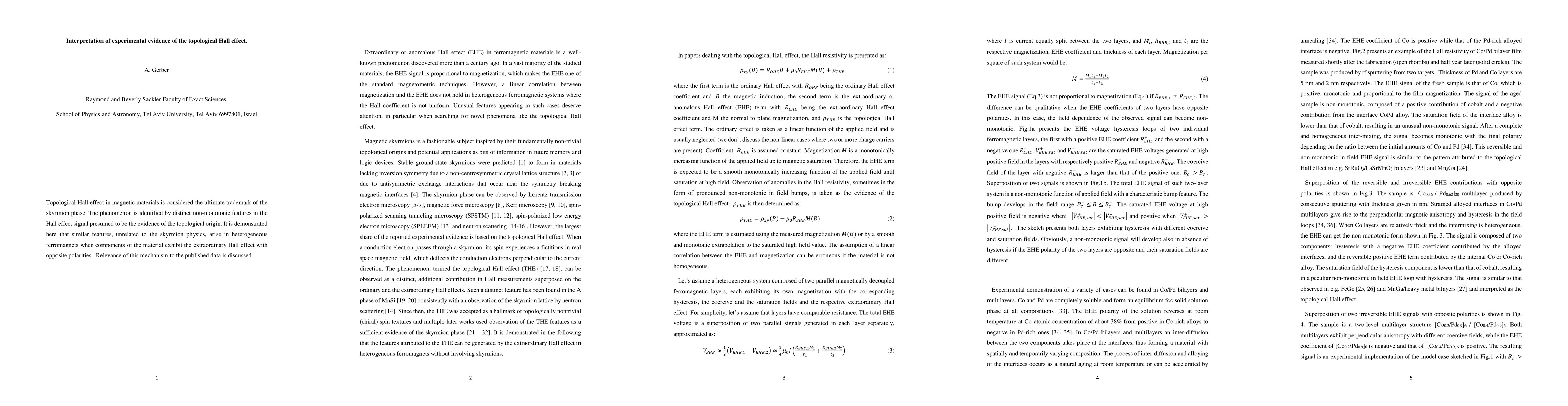 The topological Hall effect in magnetic materials is considered the ultimate trademark of the skyrmion phase. The phenomenon is identified by distinct non-monotonic features in the Hall effect signal presumed to be the evidence of the topological origin. It is demonstrated here that similar features, unrelated to the skyrmion physics, arise in heterogeneous ferromagnets when components of the material exhibit the extraordinary Hall effect with opposite polarities. Relevance of this mechanism to the published data is discussed.