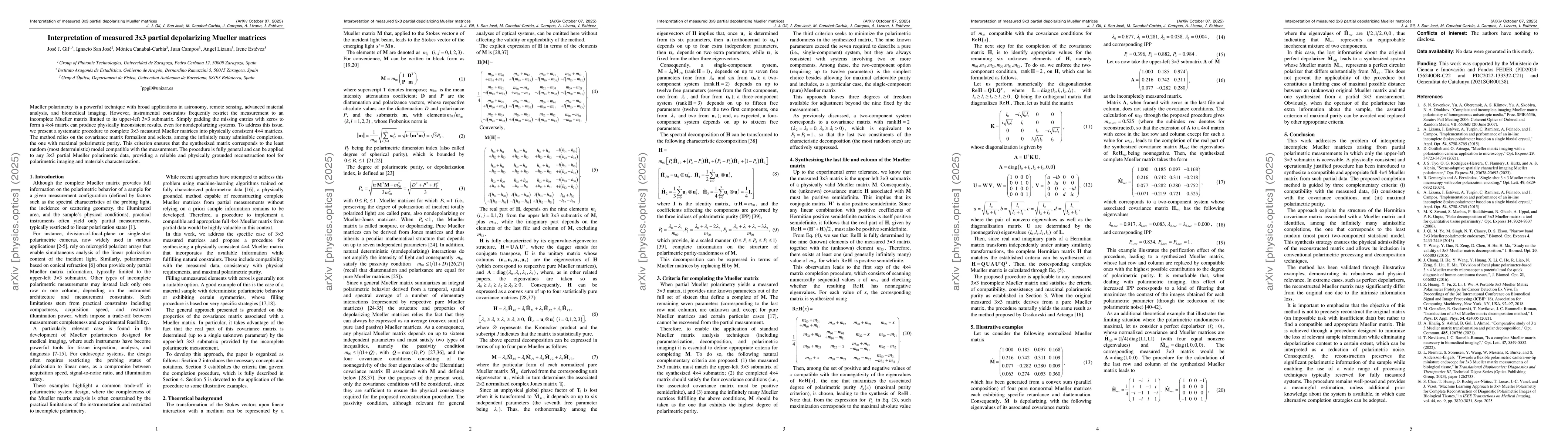 The study presents a physically consistent procedure to synthesize a full 4×4 Mueller matrix from partial 3×3 data by leveraging the structure of the Hermitian covariance matrix and three complementary criteria: compatibility with measured data, consistency with covariance conditions, and maximal polarimetric purity.