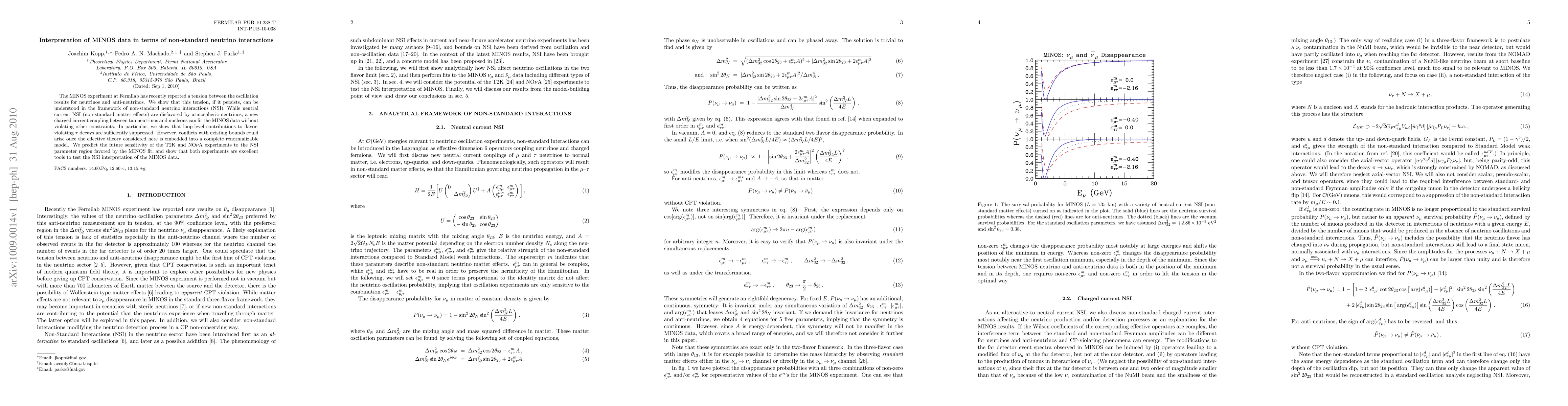 The MINOS experiment reveals a discrepancy in neutrino oscillation results for neutrinos and anti-neutrinos, potentially explained by non-standard neutrino interactions (NSI). A proposed charged current coupling between tau neutrinos and nucleons fits the MINOS data without violating other constraints, though embedding this into a complete model may face existing bounds.