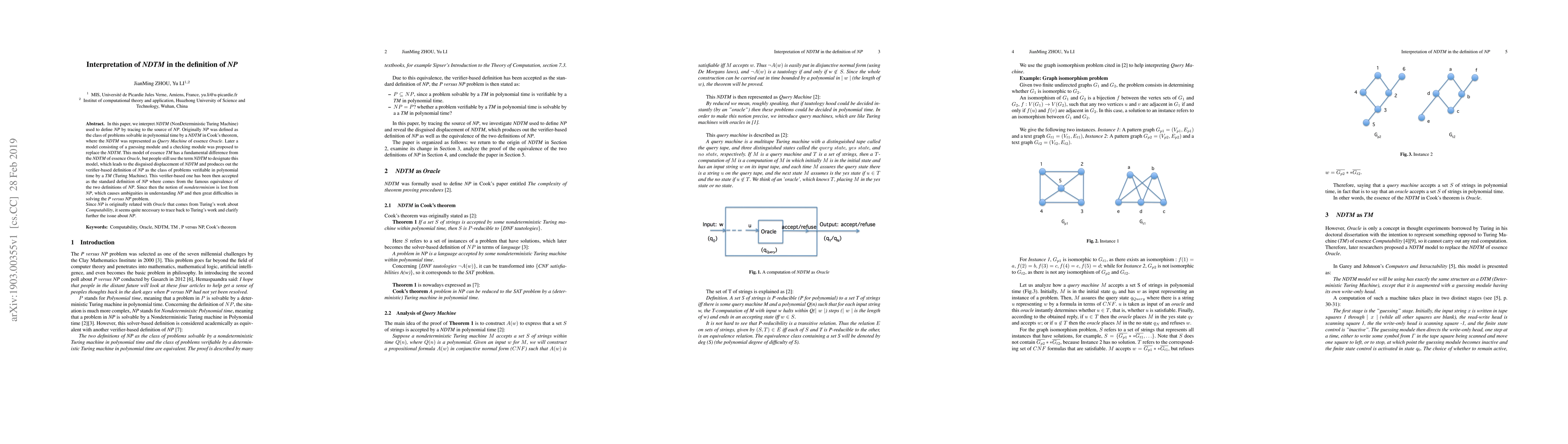 In this paper, we interpret NDTM (NonDeterministic Turing Machine) used to define NP by tracing to the source of NP. Originally NP was defined as the class of problems solvable in polynomial time by a NDTM in the theorem of Cook, where the NDTM was represented as Query Machine of essence Oracle. Later a model consisting of a guessing module and a checking module was proposed to replace the NDTM. This model of essence TM has a fundamental difference from the NDTM of essence Oracle, but people still use the term NDTM to designate this model, which leads to the disguised displacement of NDTM and produces out the verifier-based definition of NP as the class of problems verifiable in polynomial time by a TM (Turing Machine). This verifier-based one has been then accepted as the standard definition of NP where comes from the famous equivalence of the two definitions of NP. Since then the notion of nondeterminism is lost from NP, which causes ambiguities in understanding NP and then great difficulties in solving the P versus NP problem. Since NP is originally related with Oracle that comes from the work of Turing work about Computability, it seems quite necessary to trace back to the work of Turing and clarify further the issue about NP.