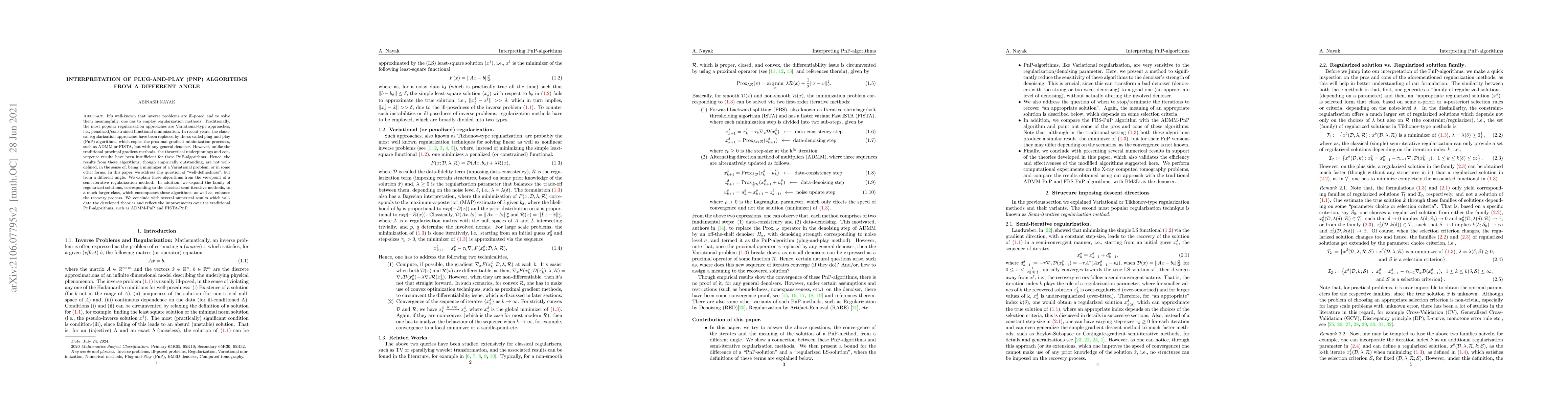 It's well-known that inverse problems are ill-posed and to solve them meaningfully one has to employ regularization methods. Traditionally, the most popular regularization approaches are Variational-type approaches, i.e., penalized/constrained functional minimization. In recent years, the classical regularization approaches have been replaced by the so-called plug-and-play (PnP) algorithms, which copies the proximal gradient minimization processes, such as ADMM or FISTA, but with any general denoiser. However, unlike the traditional proximal gradient methods, the theoretical analysis and convergence results have been insufficient for these PnP-algorithms. Hence, the results from these algorithms, though empirically outstanding, are not well-defined, in the sense of, being a minimizer of a Variational problem. In this paper, we address this question of "well-definedness", but from a different angle. We explain these algorithms from the viewpoint of a semi-iterative regularization method. In addition, we expand the family of regularized solutions, corresponding to the classical semi-iterative methods, to further generalize the explainability of these algorithms, as well as, enhance the recovery process. We conclude with several numerical results which validate the developed theories and reflect the improvements over the traditional PnP-algorithms, such as ADMM-PnP and FISTA-PnP.