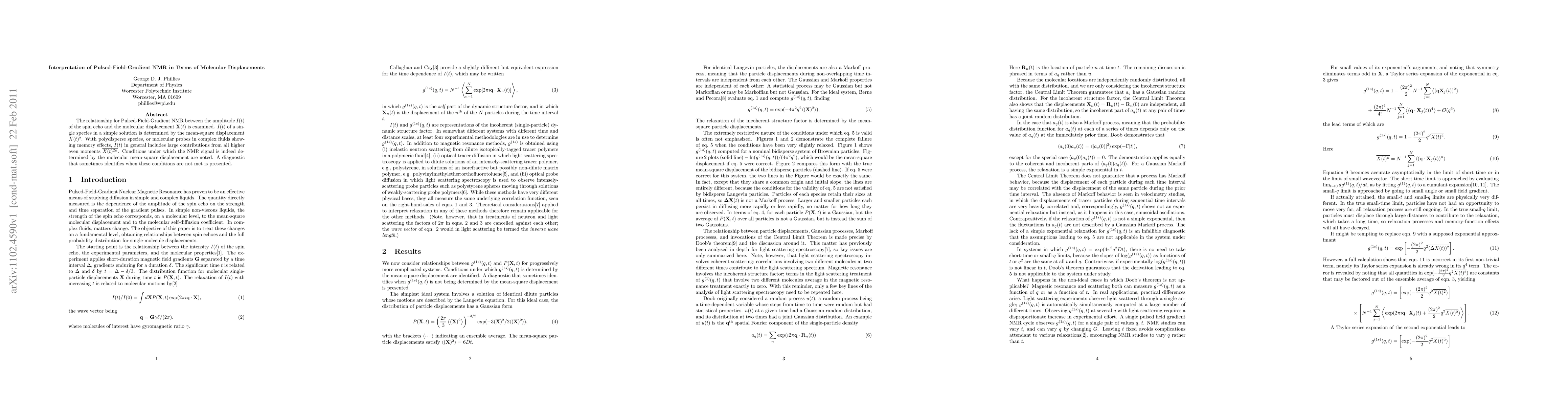 The relationship for Pulsed-Field-Gradient NMR between the amplitude $I(t)$ of the spin echo and the molecular displacement ${\bf X}(t)$ is examined. $I(t)$ of a single species in a simple solution is determined by the mean-square displacement $\bar{X(t)^{2}}$. With polydisperse species, or molecular probes in complex fluids showing memory effects, $I(t)$ in general includes large contributions from all higher even moments $\bar{X(t)^{2n}}$. Conditions under which the NMR signal is indeed determined by the molecular mean-square displacement are noted. A diagnostic that sometimes identifies when these conditions are not met is presented.