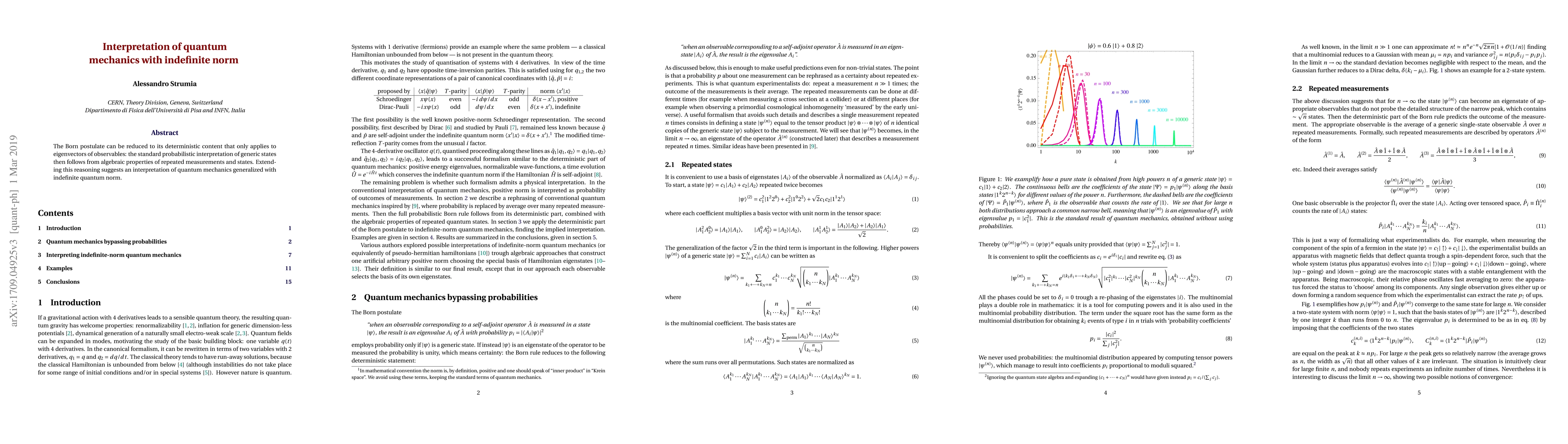 The Born postulate can be reduced to its deterministic content that only applies to eigenvectors of observables: the standard probabilistic interpretation of generic states then follows from algebraic properties of repeated measurements and states. Extending this reasoning suggests an interpretation of quantum mechanics generalized with indefinite quantum norm.
