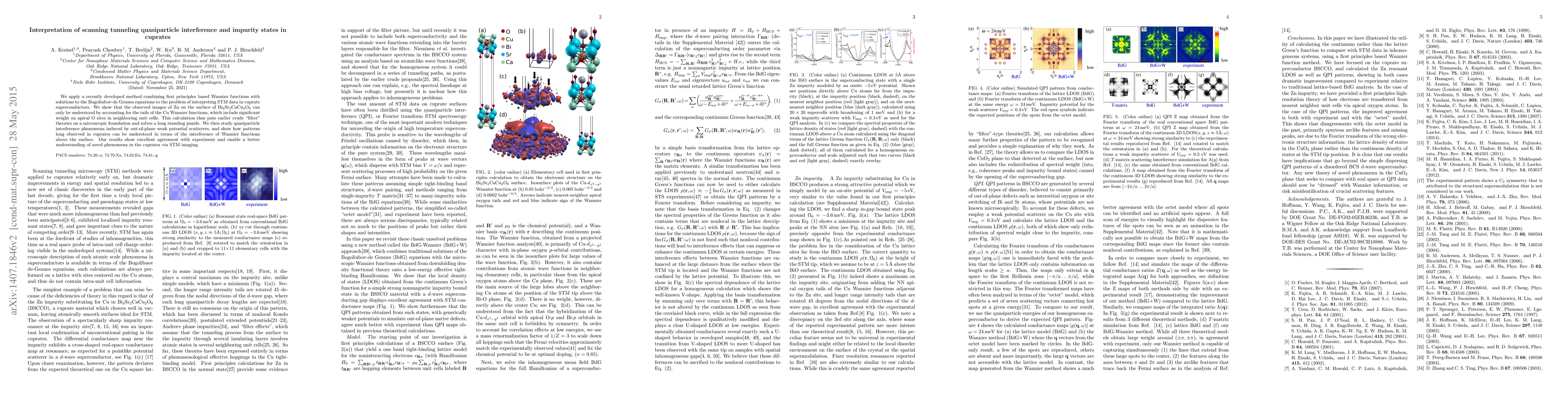 We apply a recently developed method combining first principles based Wannier functions with solutions to the Bogoliubov-de Gennes equations to the problem of interpreting STM data in cuprate superconductors. We show that the observed images of Zn on the surface of Bi$_2$Sr$_2$CaCu$_2$O$_8$ can only be understood by accounting for the tails of the Cu Wannier functions, which include significant weight on apical O sites in neighboring unit cells. This calculation thus puts earlier crude "filter" theories on a microscopic foundation and solves a long standing puzzle. We then study quasiparticle interference phenomena induced by out-of-plane weak potential scatterers, and show how patterns long observed in cuprates can be understood in terms of the interference of Wannier functions above the surface. Our results show excellent agreement with experiment and enable a better understanding of novel phenomena in the cuprates via STM imaging.
