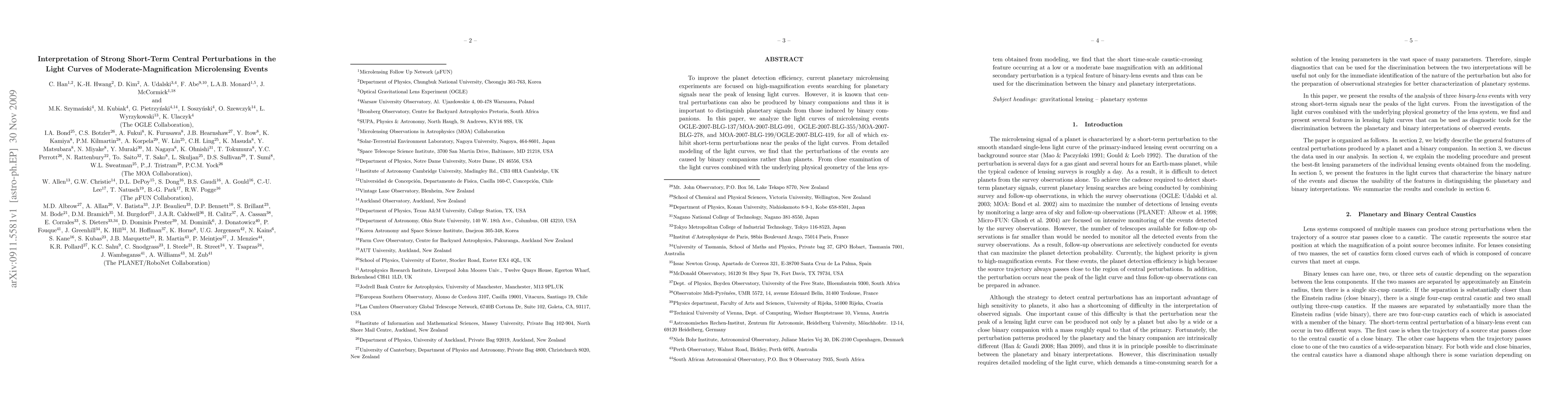 To improve the planet detection efficiency, current planetary microlensing experiments are focused on high-magnification events searching for planetary signals near the peak of lensing light curves. However, it is known that central perturbations can also be produced by binary companions and thus it is important to distinguish planetary signals from those induced by binary companions. In this paper, we analyze the light curves of microlensing events OGLE-2007-BLG-137/MOA-2007-BLG-091, OGLE-2007-BLG-355/MOA-2007-BLG-278, and MOA-2007-BLG-199/OGLE-2007-BLG-419, for all of which exhibit short-term perturbations near the peaks of the light curves. From detailed modeling of the light curves, we find that the perturbations of the events are caused by binary companions rather than planets. From close examination of the light curves combined with the underlying physical geometry of the lens system obtained from modeling, we find that the short time-scale caustic-crossing feature occurring at a low or a moderate base magnification with an additional secondary perturbation is a typical feature of binary-lens events and thus can be used for the discrimination between the binary and planetary interpretations.