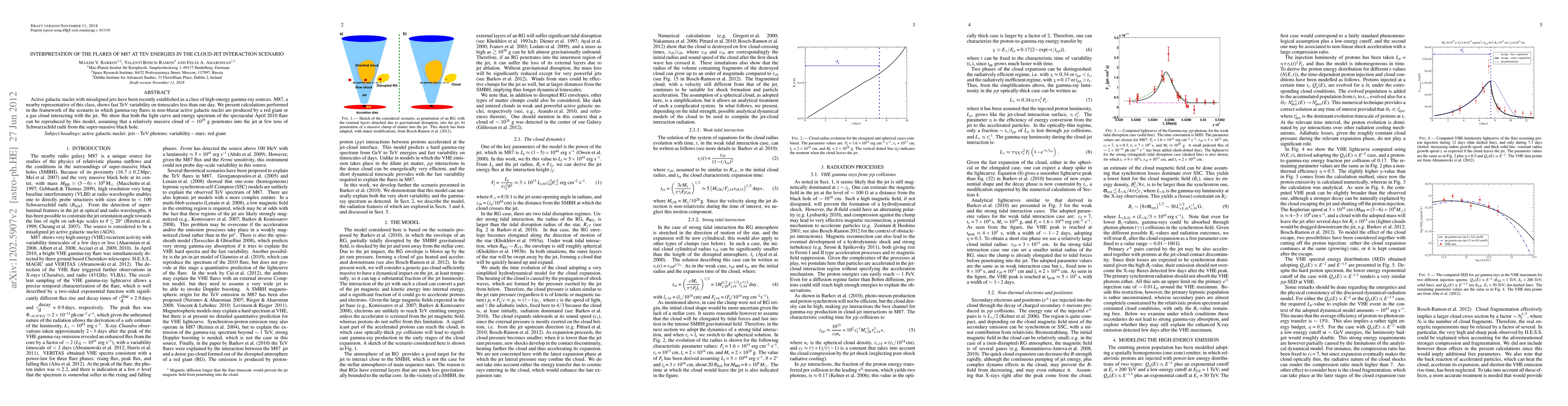 A study proposes that TeV gamma-ray flares in M87 can be explained by a cloud-jet interaction scenario, where a massive gas cloud interacts with the jet of a misaligned active galactic nucleus, reproducing its light curve and energy spectrum.