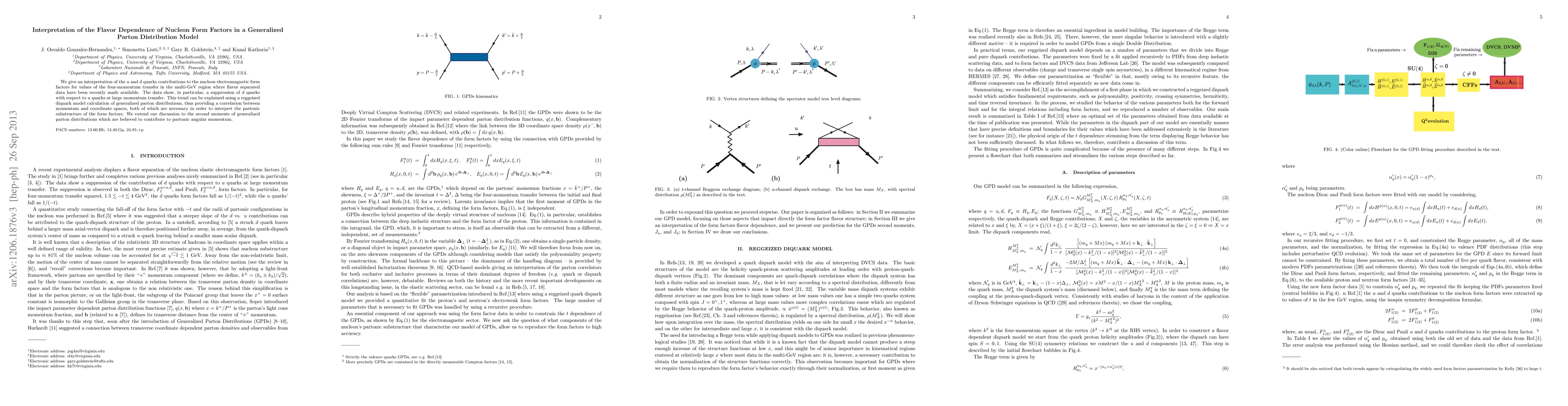 We give an interpretation of the $u$ and $d$ quarks contributions to the nucleon electromagnetic form factors for values of the four-momentum transfer in the multi-GeV region where flavor separated data have been recently made available. The data show, in particular, a suppression of $d$ quarks with respect to $u$ quarks at large momentum transfer. %and constant ratios of the flavor dependent Pauli to Dirac form factors ratios. This trend can be explained using a reggeized diquark model calculation of generalized parton distributions, thus providing a correlation between momentum and coordinate spaces, both of which are necessary in order to interpret the partonic substructure of the form factors. We extend our discussion to the second moments of generalized parton distributions which are believed to contribute to partonic angular momentum.
