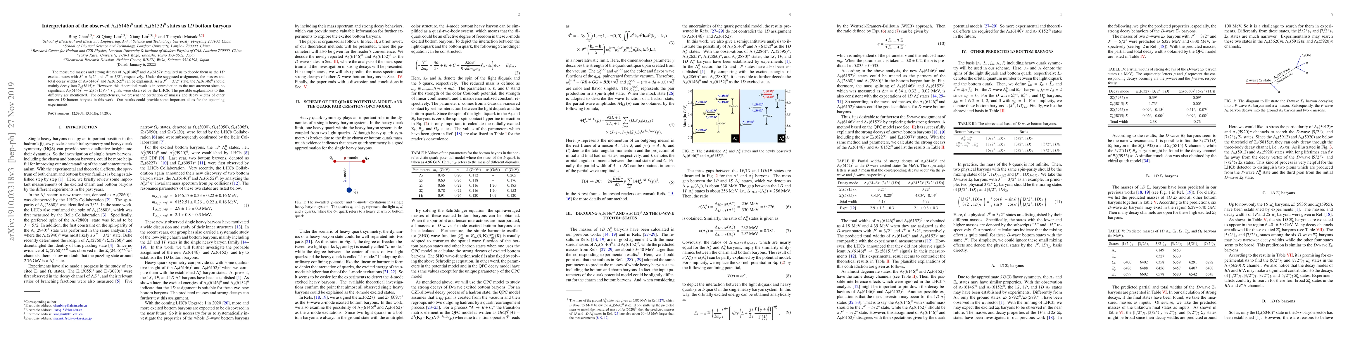 Researchers have identified two new bottom baryon states, $ uLambda_b(6146)^0$ and $ uLambda_b(6152)^0$, as 1D excited states with specific quantum numbers, but found a discrepancy in their predicted decays compared to experimental measurements.