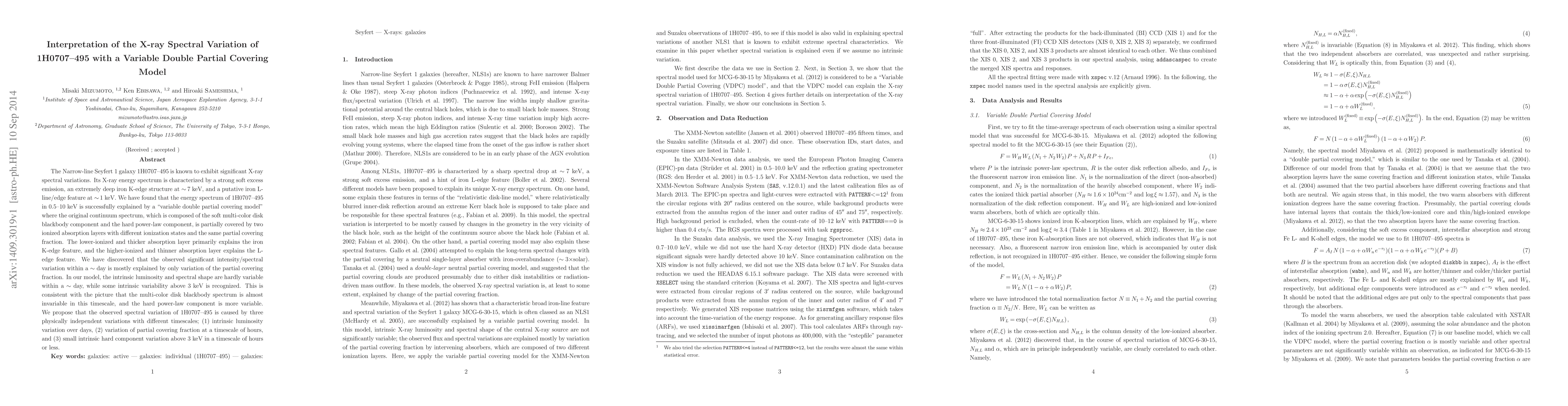 Researchers used a new model to explain X-ray spectral variations in galaxy 1H0707-495, finding three independent variability sources with different timescales: intrinsic luminosity variation over days, partial covering fraction variation at hours, and small hard component variation above 3 keV.