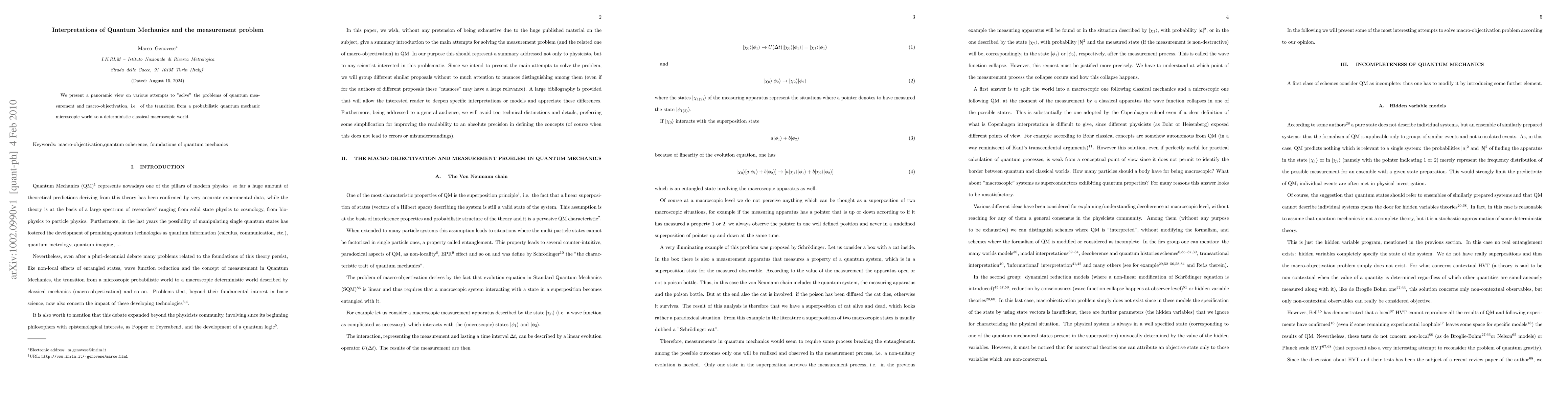 This paper provides a comprehensive overview of various attempts to resolve the measurement problem in quantum mechanics, aiming to bridge the probabilistic microscopic world with a deterministic macroscopic one. It offers a panoramic view on key findings, methodology, and implications for understanding the nature of reality.