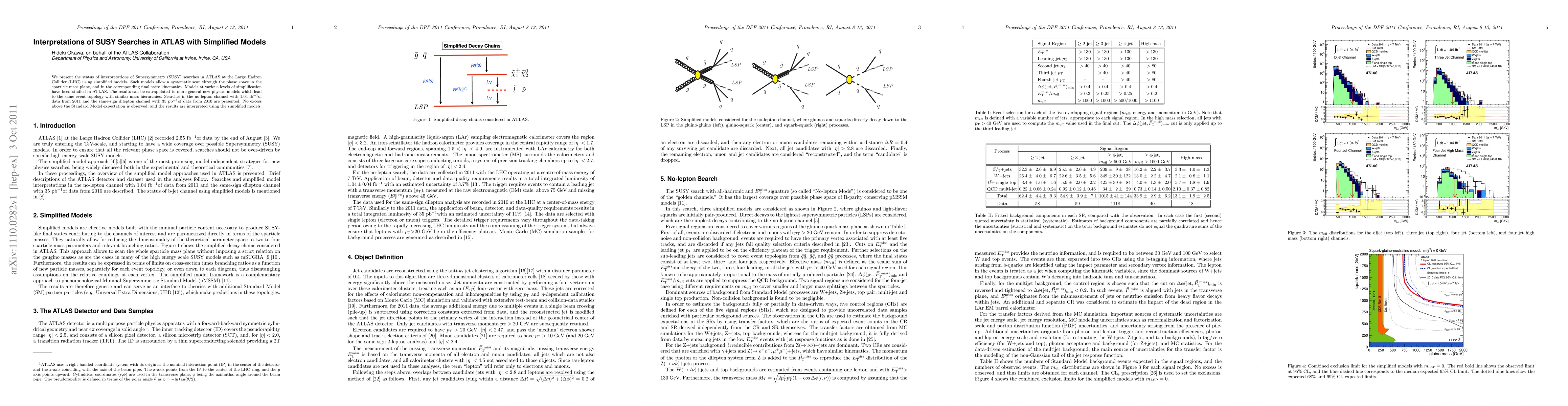 ATLAS searched for supersymmetry using simplified models, found no excess above Standard Model expectations in both 2011 and 2010 data sets.