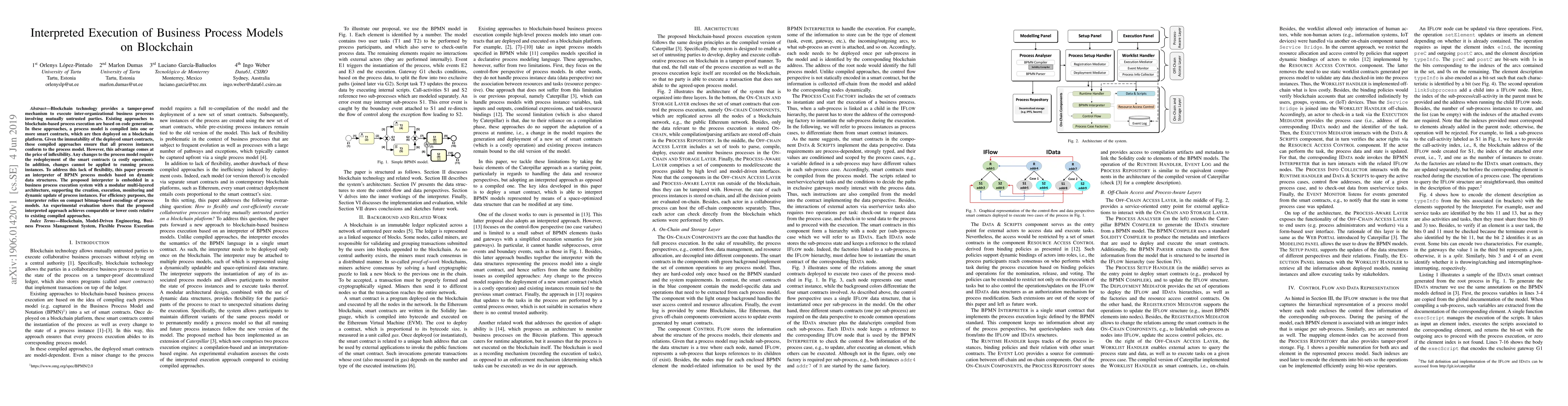 This paper proposes an interpreted execution method for blockchain-based business process models using dynamic data structures, enabling flexibility for model updates without redeploying smart contracts. The approach achieves comparable or lower costs compared to compiled methods.
