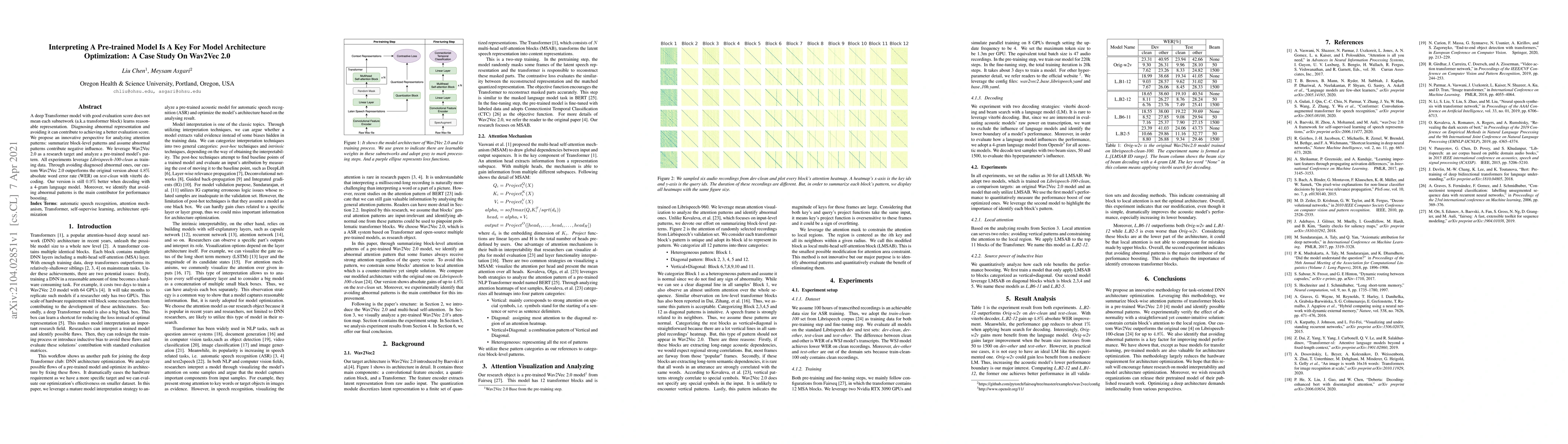 A deep Transformer model with good evaluation score does not mean each subnetwork (a.k.a transformer block) learns reasonable representation. Diagnosing abnormal representation and avoiding it can contribute to achieving a better evaluation score. We propose an innovative perspective for analyzing attention patterns: summarize block-level patterns and assume abnormal patterns contribute negative influence. We leverage Wav2Vec 2.0 as a research target and analyze a pre-trained model's pattern. All experiments leverage Librispeech-100-clean as training data. Through avoiding diagnosed abnormal ones, our custom Wav2Vec 2.0 outperforms the original version about 4.8% absolute word error rate (WER) on test-clean with viterbi decoding. Our version is still 0.9% better when decoding with a 4-gram language model. Moreover, we identify that avoiding abnormal patterns is the main contributor for performance boosting.