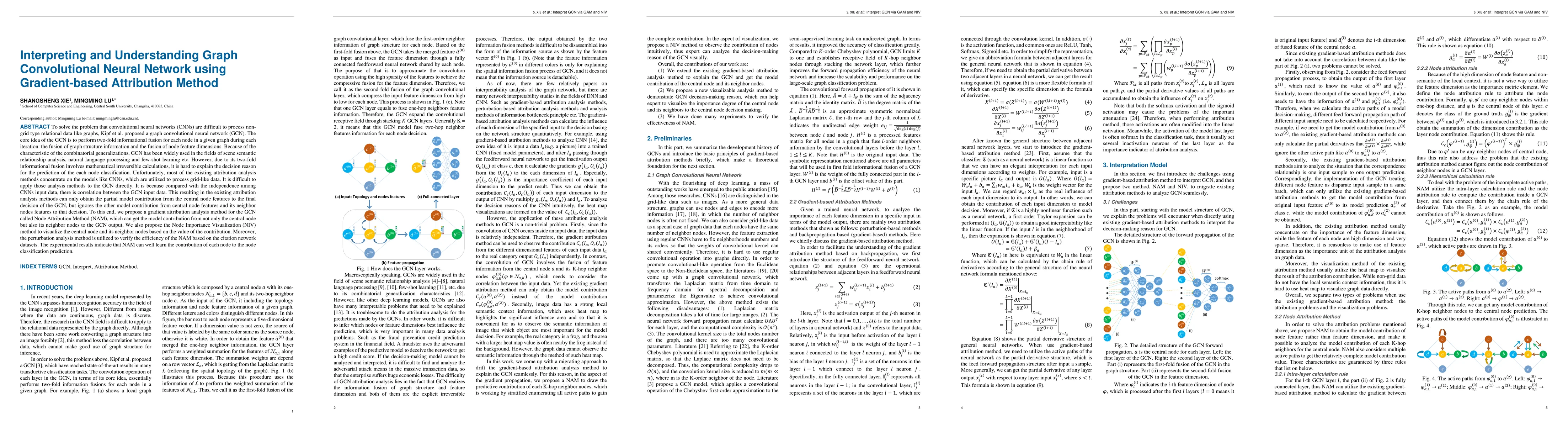 To solve the problem that convolutional neural networks (CNNs) are difficult to process non-grid type relational data like graphs, Kipf et al. proposed a graph convolutional neural network (GCN). The core idea of the GCN is to perform two-fold informational fusion for each node in a given graph during each iteration: the fusion of graph structure information and the fusion of node feature dimensions. Because of the characteristic of the combinatorial generalizations, GCN has been widely used in the fields of scene semantic relationship analysis, natural language processing and few-shot learning etc. However, due to its two-fold informational fusion involves mathematical irreversible calculations, it is hard to explain the decision reason for the prediction of the each node classification. Unfortunately, most of the existing attribution analysis methods concentrate on the models like CNNs, which are utilized to process grid-like data. It is difficult to apply those analysis methods to the GCN directly. It is because compared with the independence among CNNs input data, there is correlation between the GCN input data. This resulting in the existing attribution analysis methods can only obtain the partial model contribution from the central node features to the final decision of the GCN, but ignores the other model contribution from central node features and its neighbor nodes features to that decision. To this end, we propose a gradient attribution analysis method for the GCN called Node Attribution Method (NAM), which can get the model contribution from not only the central node but also its neighbor nodes to the GCN output. We also propose the Node Importance Visualization (NIV) method to visualize the central node and its neighbor nodes based on the value of the contribution...