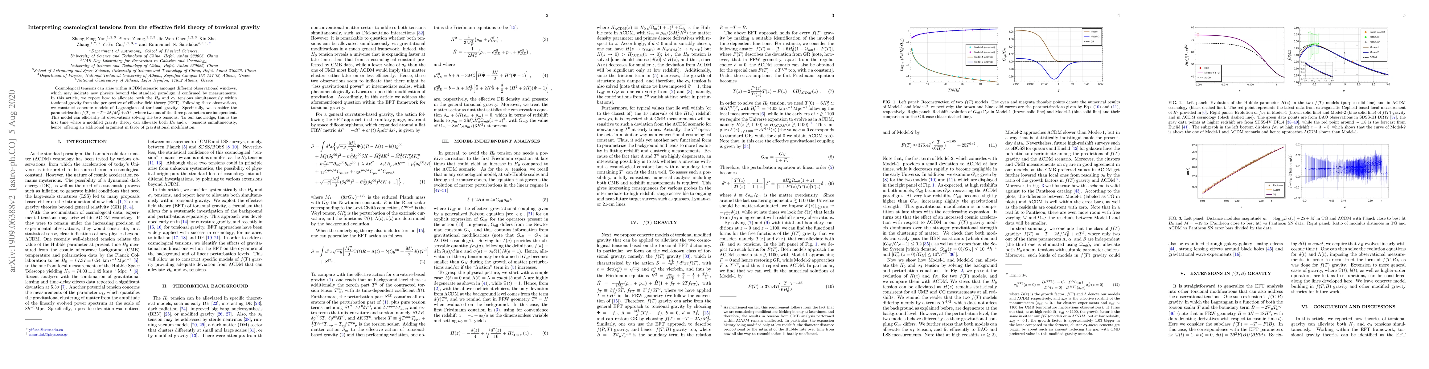 This paper explores how torsional gravity within the effective field theory framework can alleviate both the $H_0$ and $\sigma_8$ tensions in the $\Lambda$CDM model. It proposes a specific model $f(T)=-T-2\Lambda/M_P^2+\alpha T^\beta$ that successfully fits observational data, marking the first instance where a modified gravity theory resolves both tensions simultaneously.