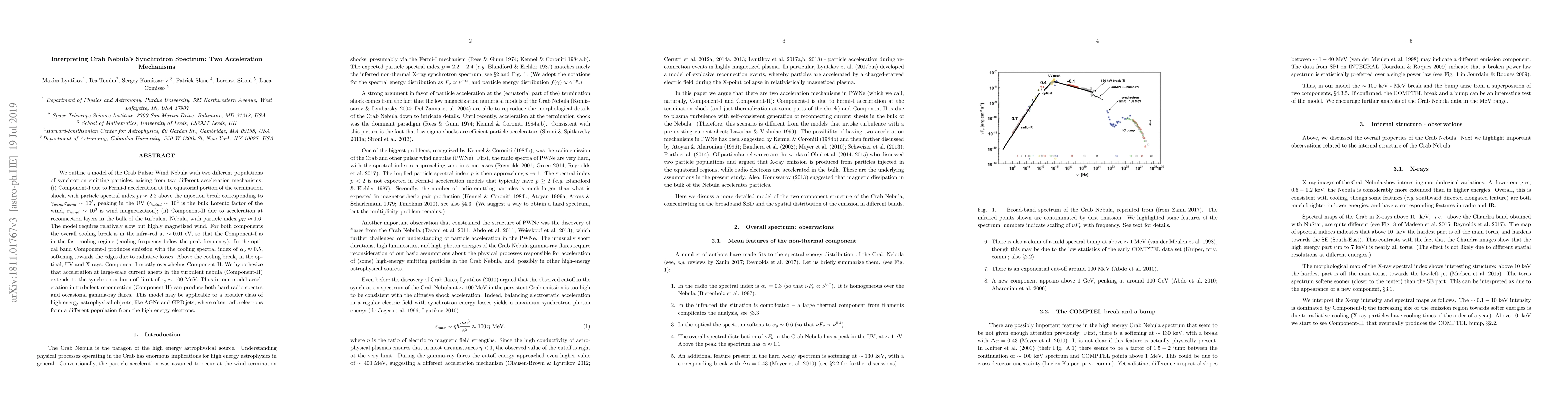 Researchers propose a new model for the Crab Nebula synchrotron spectrum, suggesting two acceleration mechanisms that produce distinct populations of particles with different spectral indices, applicable to broader high-energy astrophysical objects.