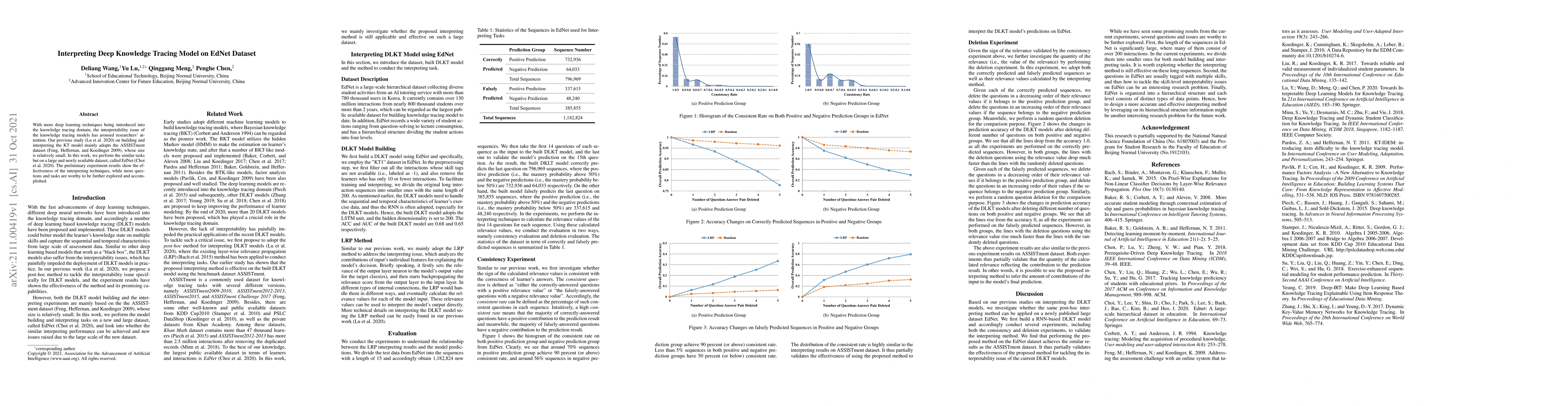 With more deep learning techniques being introduced into the knowledge tracing domain, the interpretability issue of the knowledge tracing models has aroused researchers' attention. Our previous study(Lu et al. 2020) on building and interpreting the KT model mainly adopts the ASSISTment dataset(Feng, Heffernan, and Koedinger 2009),, whose size is relatively small. In this work, we perform the similar tasks but on a large and newly available dataset, called EdNet(Choi et al. 2020). The preliminary experiment results show the effectiveness of the interpreting techniques, while more questions and tasks are worthy to be further explored and accomplished.