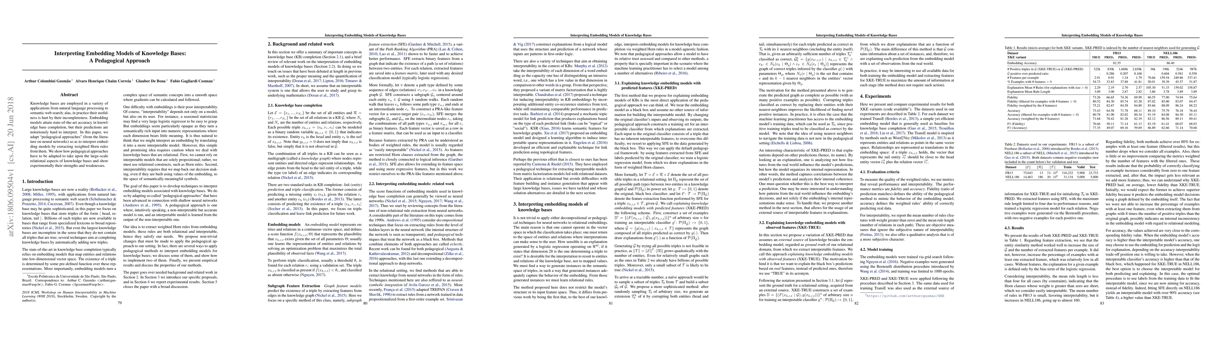 This paper explores interpreting embedding models for knowledge bases by adapting pedagogical approaches to extract weighted Horn rules, demonstrating their effectiveness and limitations in large-scale relational contexts through experimental evaluation.
