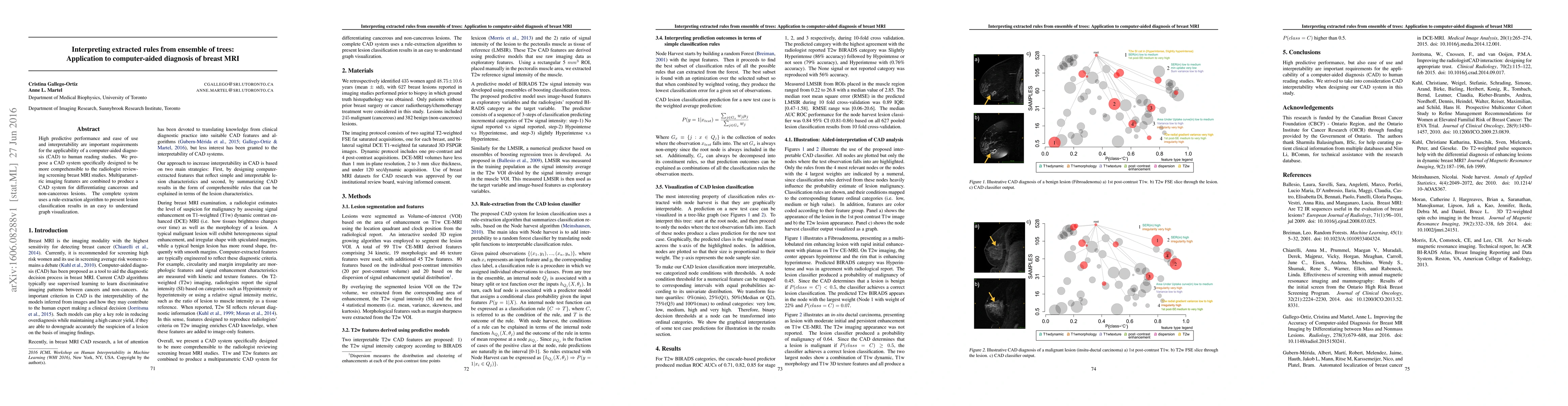 This paper proposes a computer-aided diagnosis (CAD) system for breast MRI that combines multiparametric imaging features to differentiate cancerous and non-cancerous lesions, emphasizing interpretability for radiologists. The system uses a rule-extraction algorithm to present results in a comprehensible graph visualization.