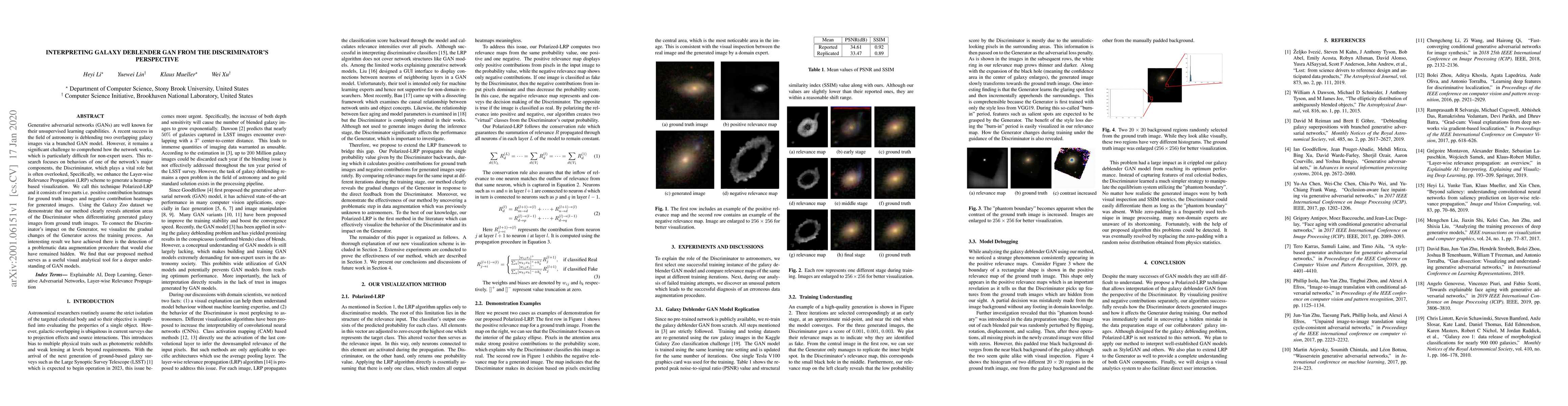 Generative adversarial networks (GANs) are well known for their unsupervised learning capabilities. A recent success in the field of astronomy is deblending two overlapping galaxy images via a branched GAN model. However, it remains a significant challenge to comprehend how the network works, which is particularly difficult for non-expert users. This research focuses on behaviors of one of the network's major components, the Discriminator, which plays a vital role but is often overlooked, Specifically, we enhance the Layer-wise Relevance Propagation (LRP) scheme to generate a heatmap-based visualization. We call this technique Polarized-LRP and it consists of two parts i.e. positive contribution heatmaps for ground truth images and negative contribution heatmaps for generated images. Using the Galaxy Zoo dataset we demonstrate that our method clearly reveals attention areas of the Discriminator when differentiating generated galaxy images from ground truth images. To connect the Discriminator's impact on the Generator, we visualize the gradual changes of the Generator across the training process. An interesting result we have achieved there is the detection of a problematic data augmentation procedure that would else have remained hidden. We find that our proposed method serves as a useful visual analytical tool for a deeper understanding of GAN models.