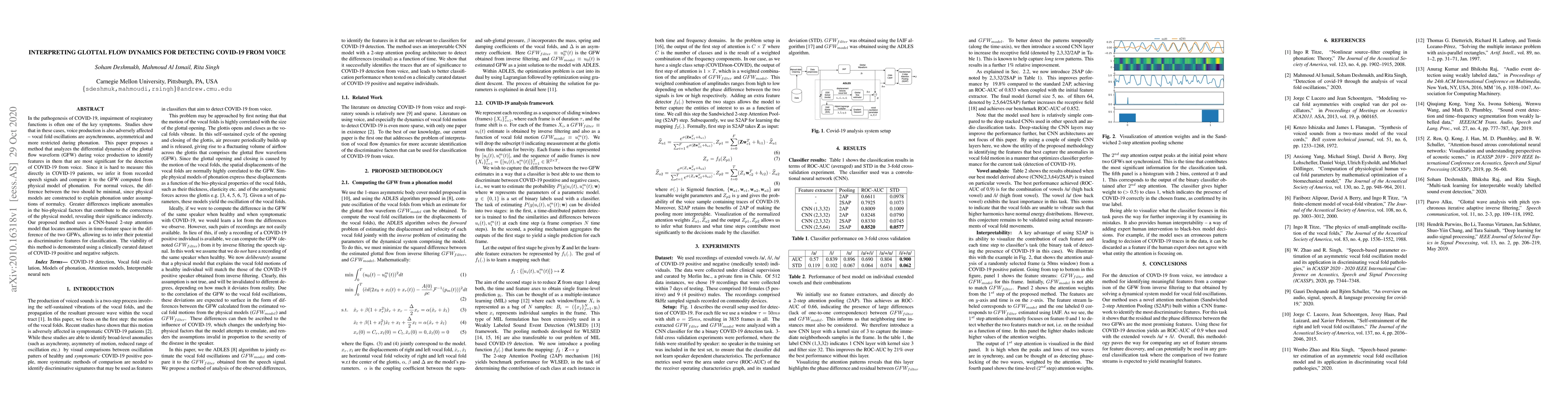 This research proposes a method to detect COVID-19 by analyzing glottal flow dynamics from voice recordings. It uses a CNN-based attention model to identify anomalies in the glottal flow waveform, which are indicative of COVID-19 due to the disease's impact on respiratory functions. The method's effectiveness is demonstrated using a dataset of clinically verified COVID-19 cases and controls.