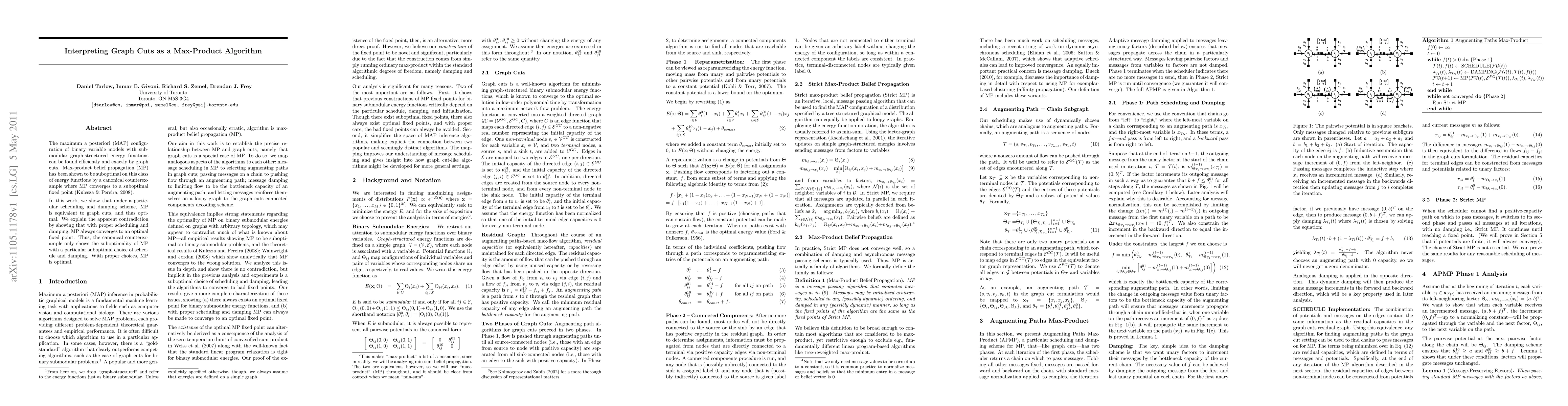 This paper shows that maximum a posteriori (MAP) configuration can be efficiently found using graph cuts, correcting a previous counterexample where max-product belief propagation (MP) was shown to be suboptimal. MP is optimal when used with proper scheduling and damping schemes.