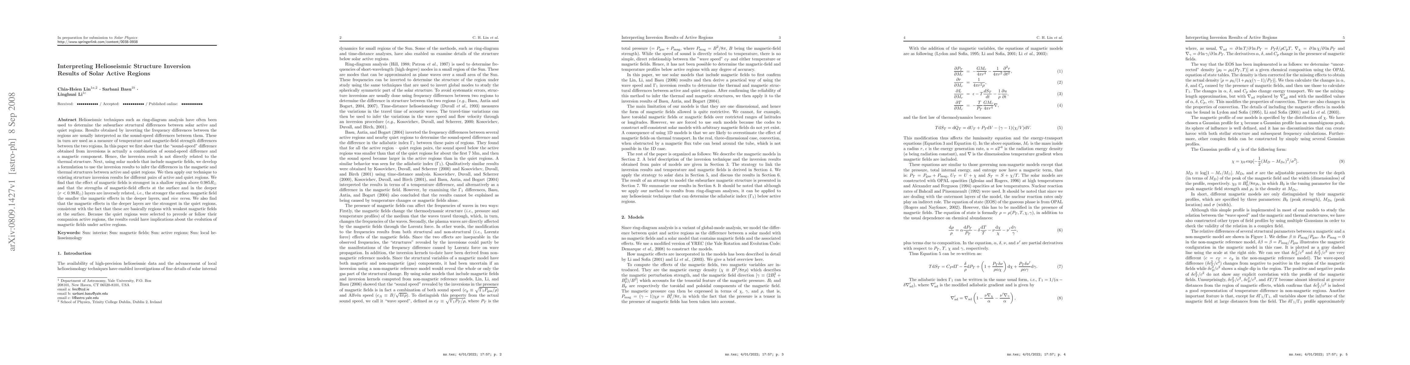 This paper demonstrates that helioseismic inversion results, traditionally interpreted as sound-speed differences, actually reflect a combination of sound-speed and magnetic field differences. It proposes a new method to infer magnetic and thermal structure differences between solar active and quiet regions, revealing that magnetic effects are strongest near the surface and inversely related to surface magnetic field strength.