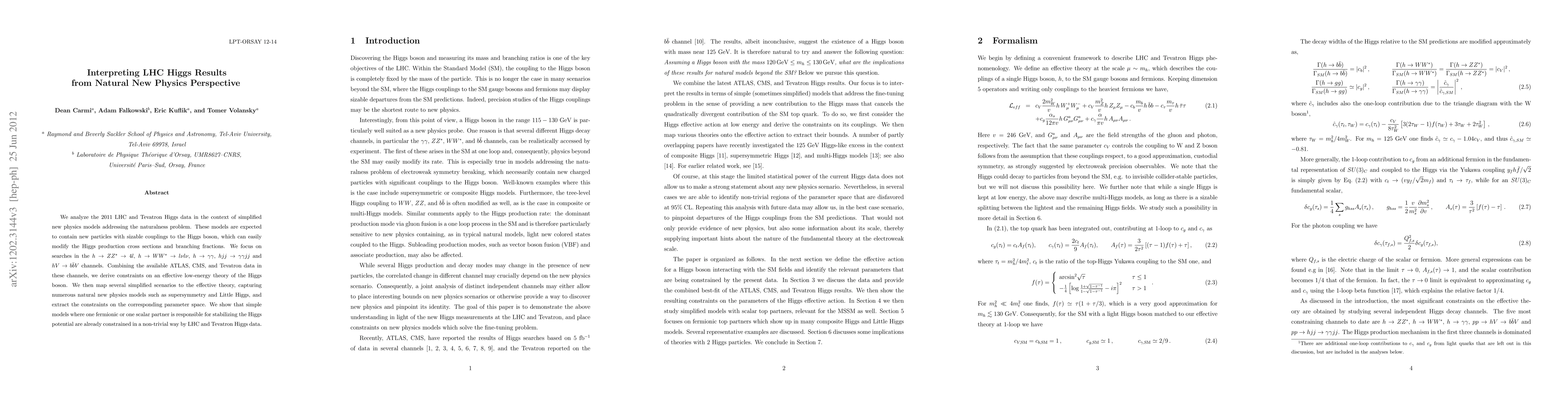 This paper analyzes LHC Higgs data in the context of simplified new physics models aimed at addressing the naturalness problem, focusing on Higgs to 4 leptons and diphoton channels. It derives constraints on an effective low-energy theory and shows that simple models with fermionic or scalar partners are already constrained by LHC data.