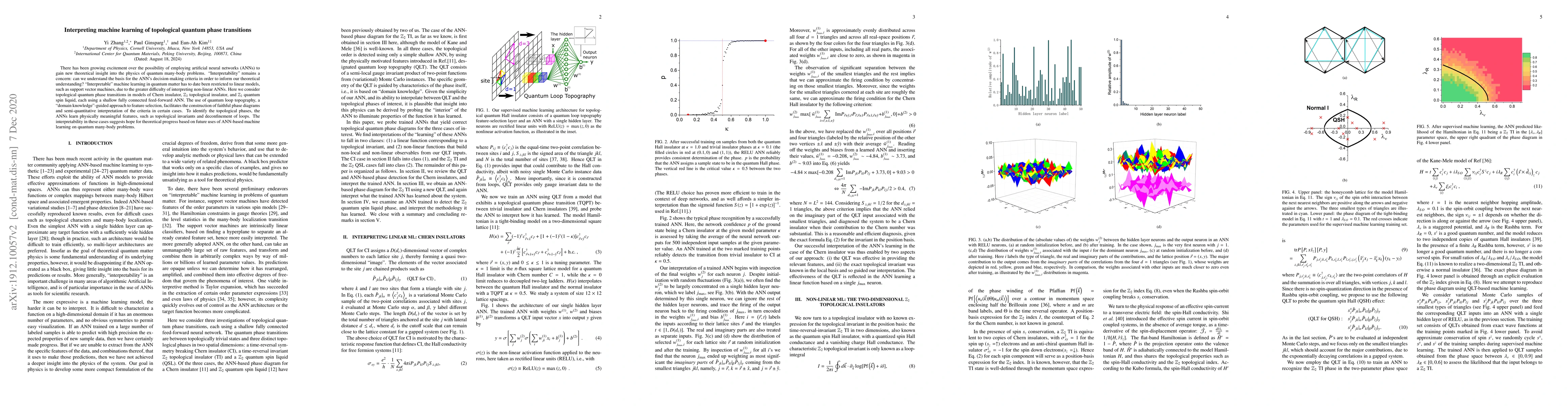 This paper explores the use of shallow fully connected feed-forward artificial neural networks (ANNs) to interpret topological quantum phase transitions in models like Chern insulators and $\mathbb{Z}_2$ topological insulators. Quantum loop topography aids in constructing meaningful phase diagrams and offers semi-quantitative interpretations of ANN decision-making criteria.