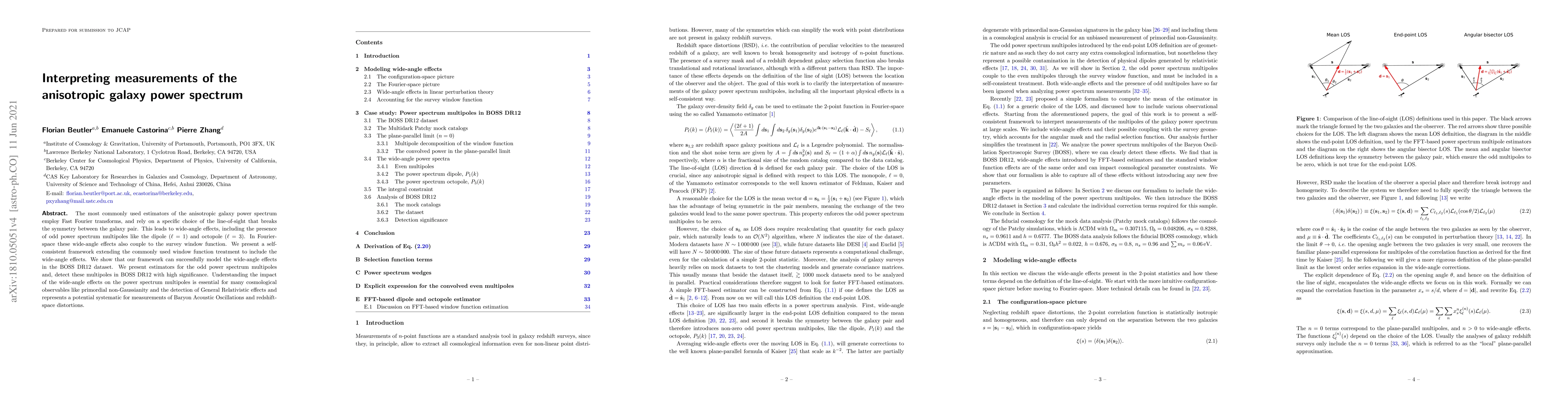 The most commonly used estimators of the anisotropic galaxy power spectrum employ Fast Fourier transforms, and rely on a specific choice of the line-of-sight that breaks the symmetry between the galaxy pair. This leads to wide-angle effects, including the presence of odd power spectrum multipoles like the dipole ($\ell = 1$) and octopole ($\ell = 3$). In Fourier-space these wide-angle effects also couple to the survey window function. We present a self-consistent framework extending the commonly used window function treatment to include the wide-angle effects. We show that our framework can successfully model the wide-angle effects in the BOSS DR12 dataset. We present estimators for the odd power spectrum multipoles and, detect these multipoles in BOSS DR12 with high significance. Understanding the impact of the wide-angle effects on the power spectrum multipoles is essential for many cosmological observables like primordial non-Gaussianity and the detection of General Relativistic effects and represents a potential systematic for measurements of Baryon Acoustic Oscillations and redshift-space distortions.