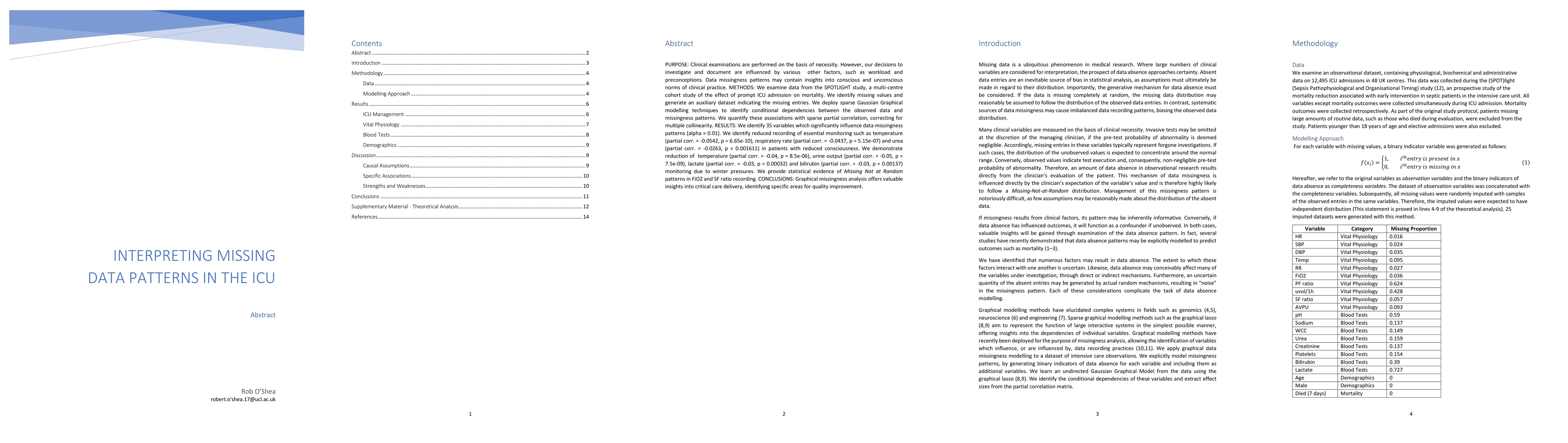 Researchers used sparse graphical modeling to identify patterns in missing data from ICU patients, revealing reduced monitoring of vital signs during periods of high workload and winter pressures. The study highlights the need for quality improvement in critical care delivery.