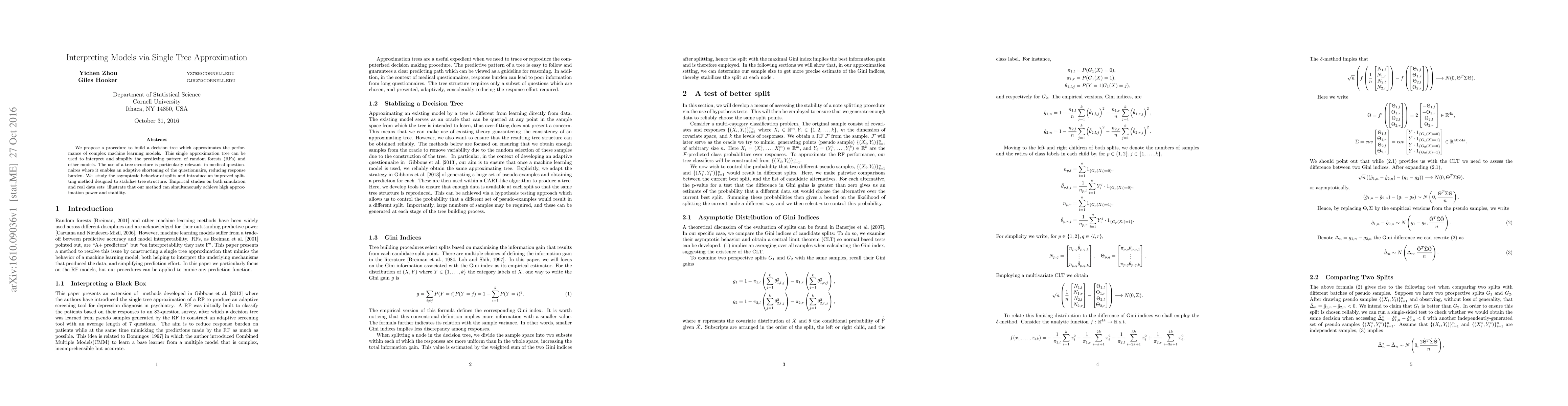 Researchers propose a method to simplify complex machine learning models like random forests into single tree approximations, improving interpretability and reducing response burden in medical questionnaires.