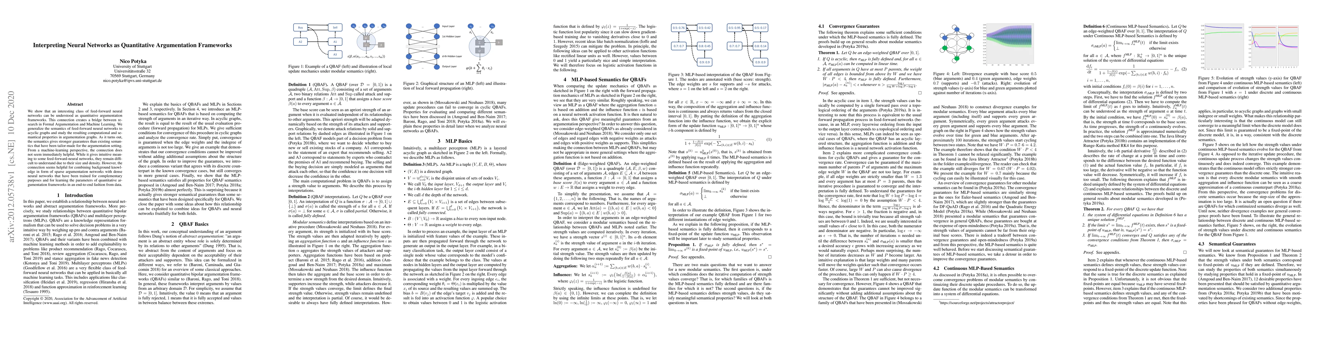This paper demonstrates that certain feed-forward neural networks can be interpreted as quantitative argumentation frameworks, bridging Formal Argumentation and Machine Learning. It generalizes neural network semantics to acyclic graphs, offering stronger guarantees than existing argumentation-specific semantics.