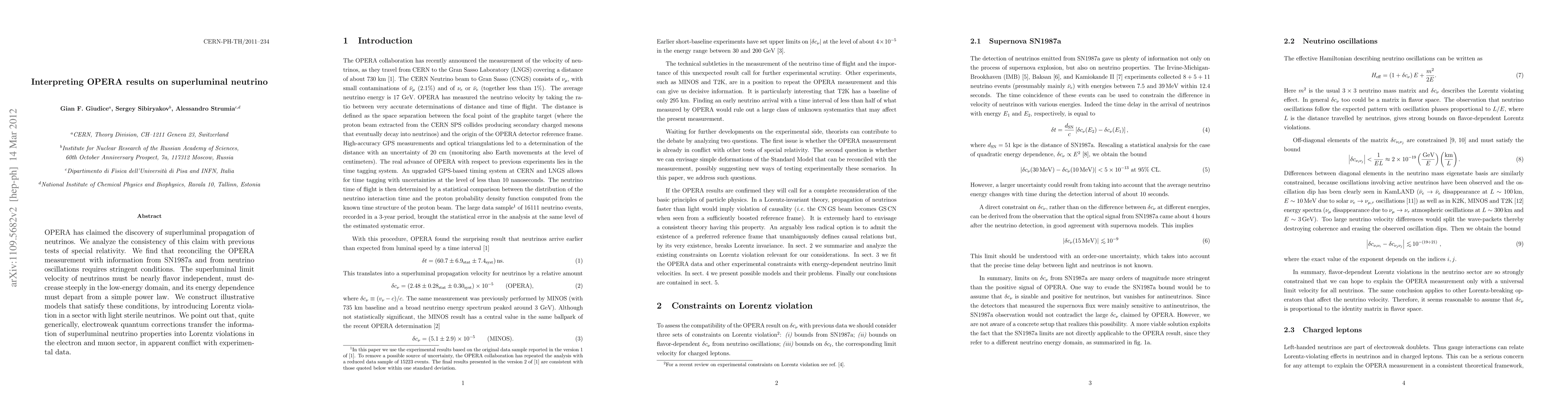OPERA has claimed the discovery of superluminal propagation of neutrinos. We analyze the consistency of this claim with previous tests of special relativity. We find that reconciling the OPERA measurement with information from SN1987a and from neutrino oscillations requires stringent conditions. The superluminal limit velocity of neutrinos must be nearly flavor independent, must decrease steeply in the low-energy domain, and its energy dependence must depart from a simple power law. We construct illustrative models that satisfy these conditions, by introducing Lorentz violation in a sector with light sterile neutrinos. We point out that, quite generically, electroweak quantum corrections transfer the information of superluminal neutrino properties into Lorentz violations in the electron and muon sector, in apparent conflict with experimental data.