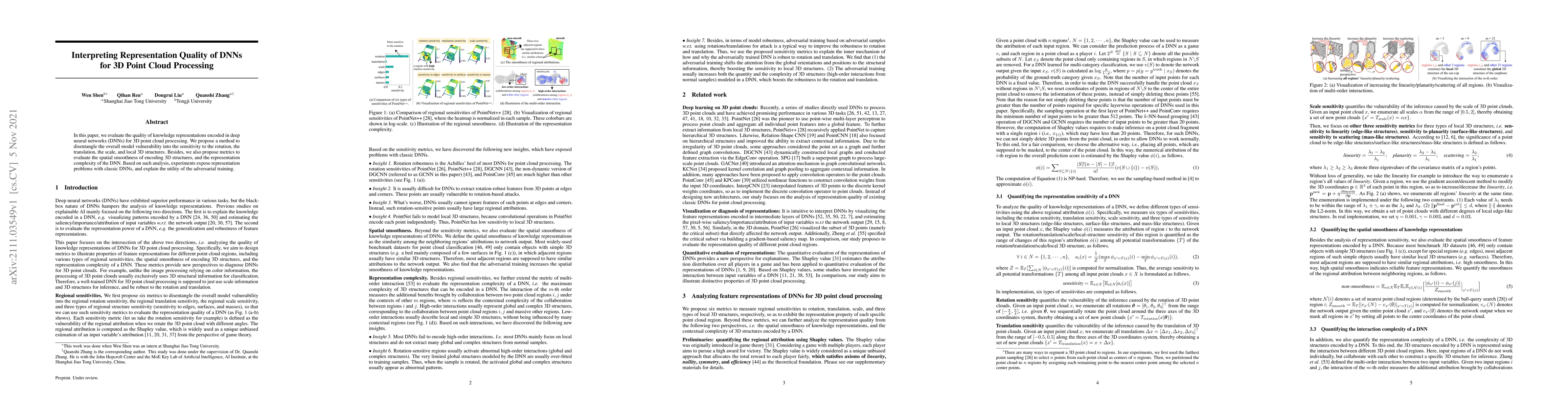 This paper evaluates the quality of representations encoded in deep neural networks for 3D point cloud processing, proposing methods to disentangle model vulnerabilities and metrics to assess spatial smoothness and representation complexity. Experiments reveal representation issues in classic DNNs and highlight the benefits of adversarial training.