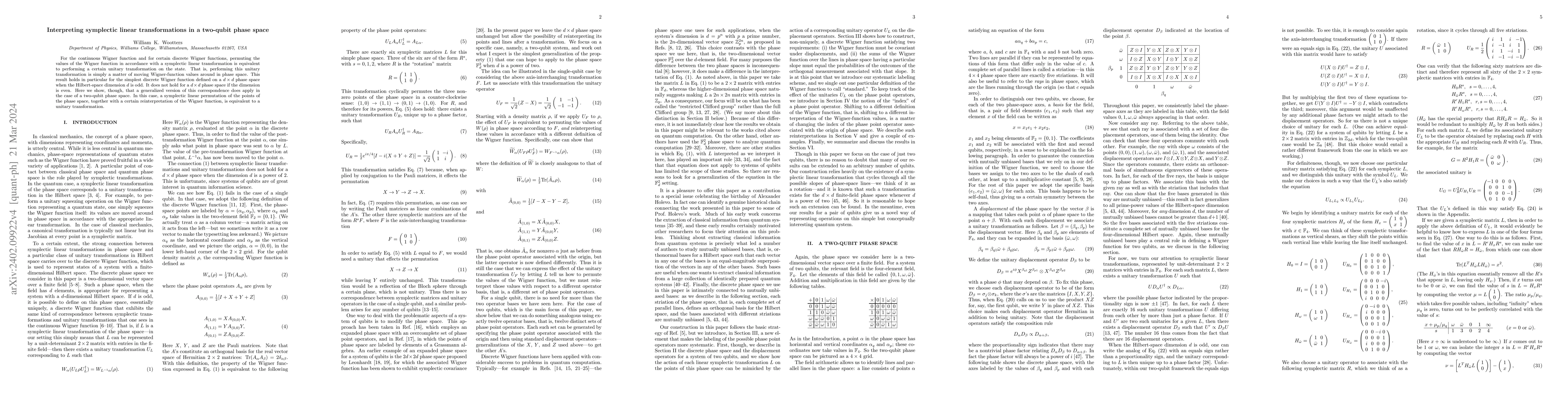 The paper demonstrates that permuting Wigner function values according to a symplectic linear transformation corresponds to a unitary transformation in a two-qubit phase space, with a generalized approach extending this correspondence from odd to even dimensions. This reinterpretation applies specifically to the continuous and certain discrete Wigner functions.
