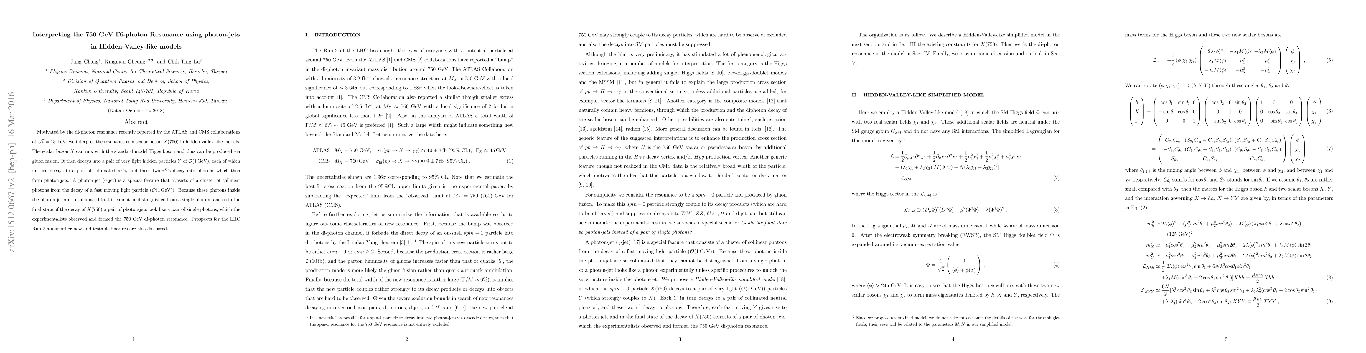 This paper interprets the 750 GeV di-photon resonance observed by ATLAS and CMS as a scalar boson $X (750)$ in hidden-valley-like models, which decays into photon-jets formed by collimated photons from sub-GeV particles. The study discusses potential LHC Run-2 signatures for further exploration.