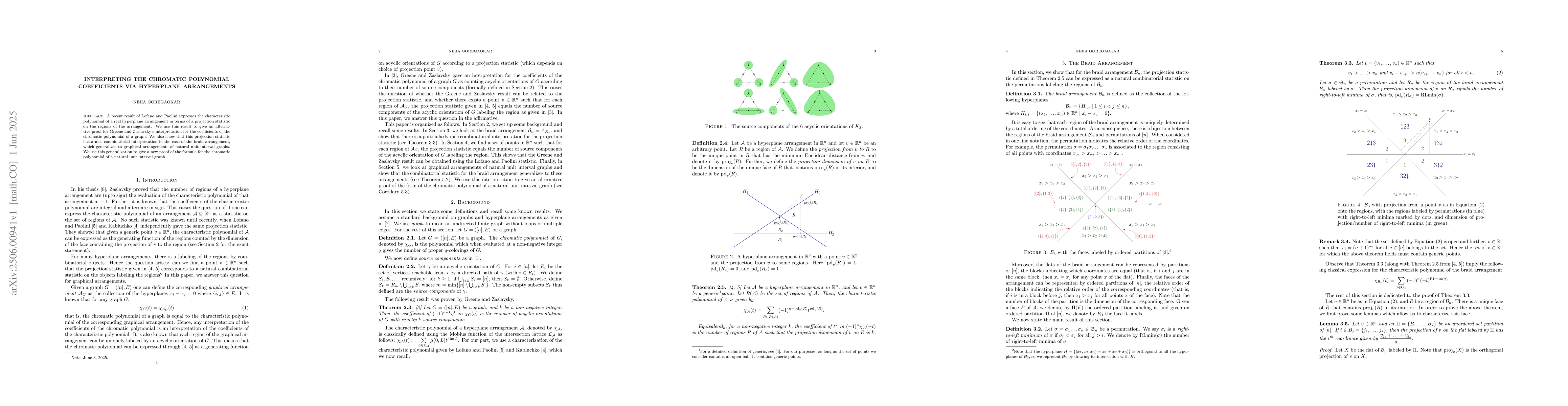 The paper presents an innovative connection between hyperplane arrangements and chromatic polynomial coefficients, offering a novel proof for unit interval graphs.