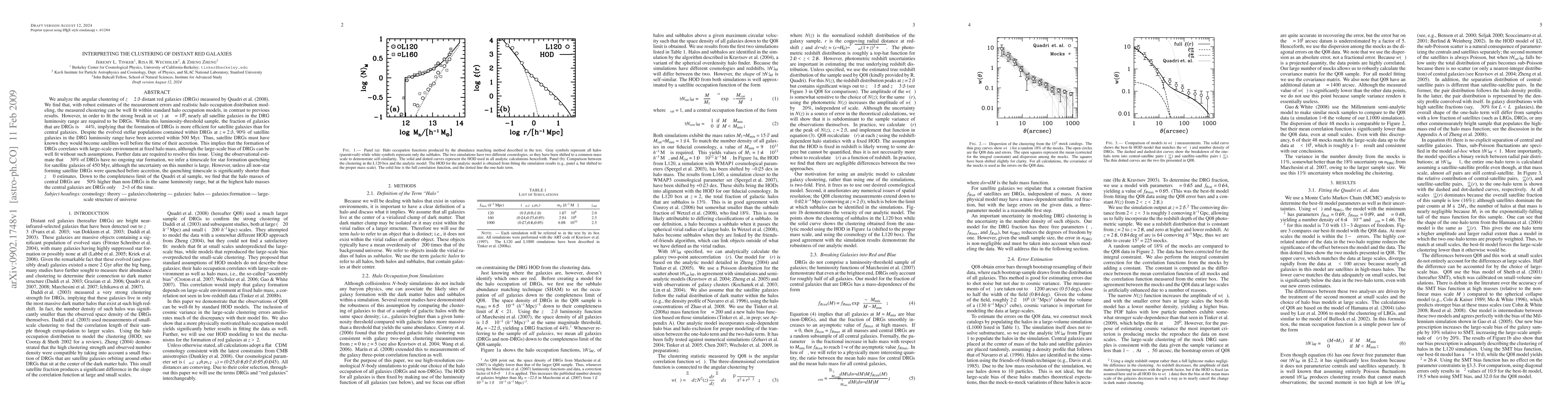 We analyze the angular clustering of z~2.3 distant red galaxies (DRGs) measured by Quadri et al 2008. We find that, with robust estimates of the measurement errors and realistic halo occupation distribution modeling, the measured clustering can be well fit within standard halo occupation models, in contrast to previous results. However, in order to fit the strong break in w(theta) at theta=10 arcsec, nearly all satellite galaxies in the DRG luminosity range are required to be DRGs. Within this luminosity-threshold sample, the fraction of galaxies that are DRGs is ~44%, implying that the formation of DRGs is more efficient for satellite galaxies than for central galaxies. Despite the evolved stellar populations contained within DRGs at z=2.3, 90% of satellite galaxies in the DRG luminosity range have been accreted within 500 Myr. Thus, satellite DRGs must have known they would become satellites well before the time of their accretion. This implies that the formation of DRGs correlates with large-scale environment at fixed halo mass, although the large-scale bias of DRGs can be well fit without such assumptions. Further data are required to resolve this issue. Using the observational estimate that ~30% of DRGs have no ongoing star formation, we infer a timescale for star formation quenching for satellite galaxies of 450 Myr, although the uncertainty on this number is large. However, unless all non-star forming satellite DRGs were quenched before accretion, the quenching timescale is significantly shorter than z~0 estimates. Down to the completeness limit of the Quadri et al sample, we find that the halo masses of central DRGs are ~50% higher than non-DRGs in the same luminosity range, but at the highest halo masses the central galaxies are DRGs only ~2/3 of the time.