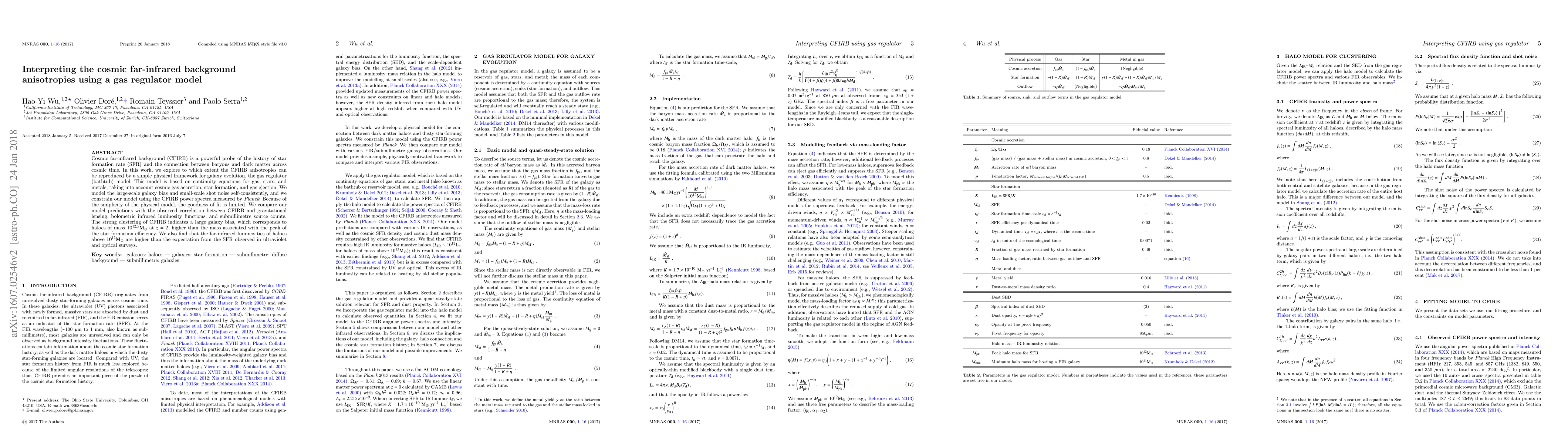 This paper investigates how well the gas regulator model, which describes the evolution of gas, stars, and metals in galaxies, can reproduce cosmic far-infrared background anisotropies. The model's predictions are compared with observational data, revealing a strong galaxy bias linked to massive haloes at z=2, suggesting higher far-infrared luminosities than expected from ultraviolet and optical surveys.