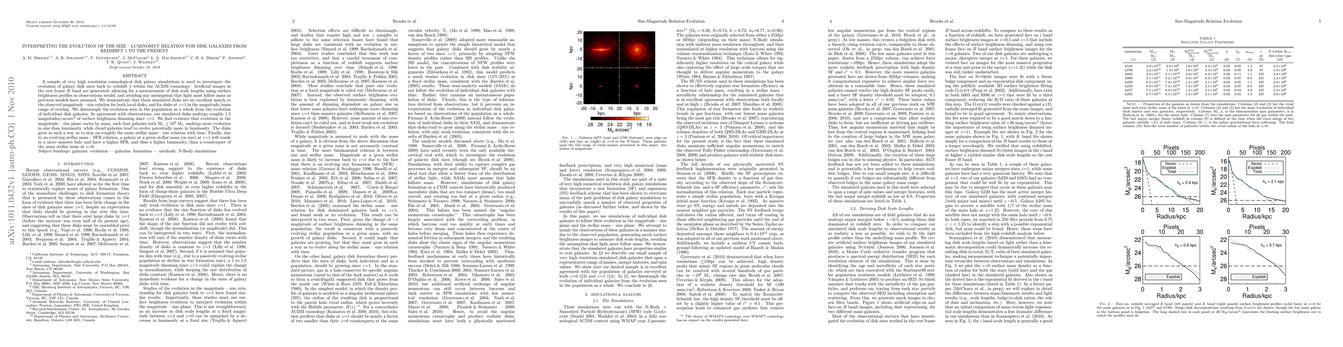 A sample of very high resolution cosmological disk galaxy simulations is used to investigate the evolution of galaxy disk sizes back to redshift 1 within the Lambda CDM cosmology. Artificial images in the rest frame B band are generated, allowing for a measurement of disk scale lengths using surface brightness profiles as observations would, and avoiding any assumption that light must follow mass as previous models have assumed. We demonstrate that these simulated disks are an excellent match to the observed magnitude - size relation for both local disks, and for disks at z=1 in the magnitude/mass range of overlap. We disentangle the evolution seen in the population as a whole from the evolution of individual disk galaxies. In agreement with observations, our simulated disks undergo roughly 1.5 magnitudes/arcsec^2 of surface brightness dimming since z=1. We find evidence that evolution in the magnitude - size plane varies by mass, such that galaxies with M* > 10^9 M_sun undergo more evolution in size than luminosity, while dwarf galaxies tend to evolve potentially more in luminosity. The disks grow in such a way as to stay on roughly the same stellar mass - size relation with time. Finally, due to an evolving stellar mass - SFR relation, a galaxy at a given stellar mass (or size) at z=1 will reside in a more massive halo and have a higher SFR, and thus a higher luminosity, than a counterpart of the same stellar mass at z=0.
