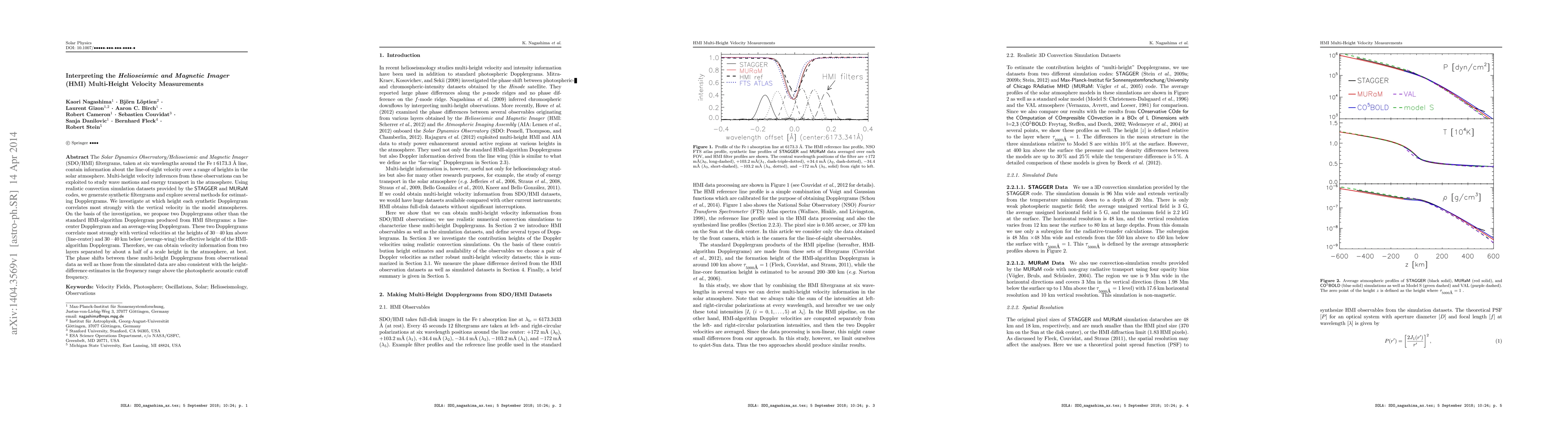 This paper investigates methods to interpret multi-height velocity measurements from the SDO/HMI instrument, proposing two new Dopplergrams—line-center and average-wing—that correlate strongly with vertical velocities at different heights in the solar atmosphere. These Dopplergrams provide insights into wave motions and energy transport across distinct atmospheric layers.