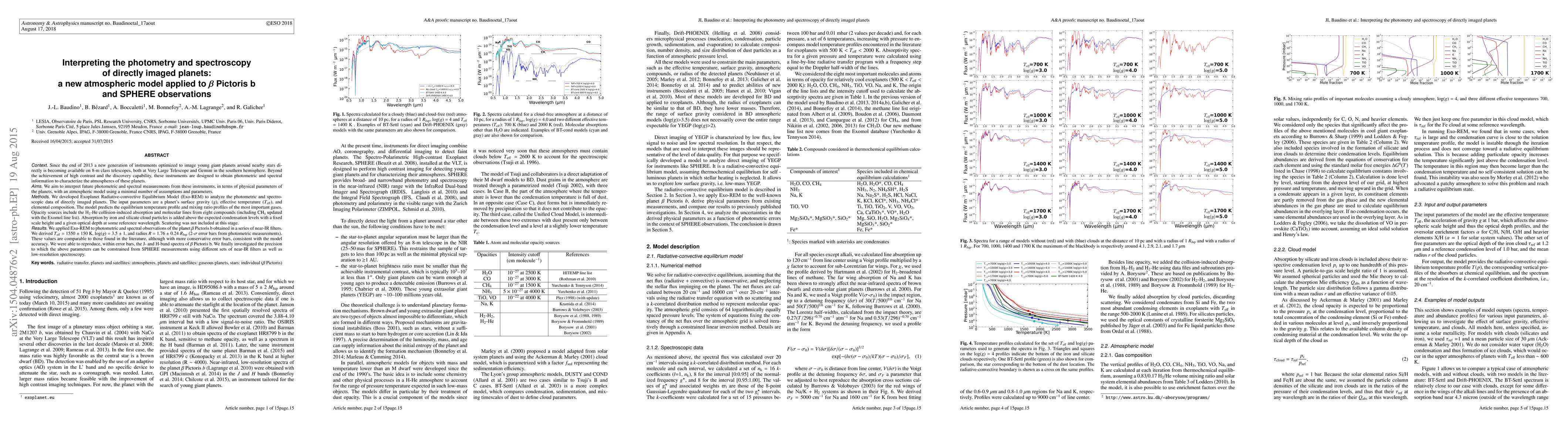 This paper introduces the Exoplanet Radiative-convective Equilibrium Model (Exo-REM) to interpret photometric and spectroscopic data of directly imaged exoplanets, requiring minimal assumptions and parameters. The model was applied to beta Pictoris b, yielding consistent temperature, gravity, and radius estimates, and successfully reproducing its near-IR spectra.