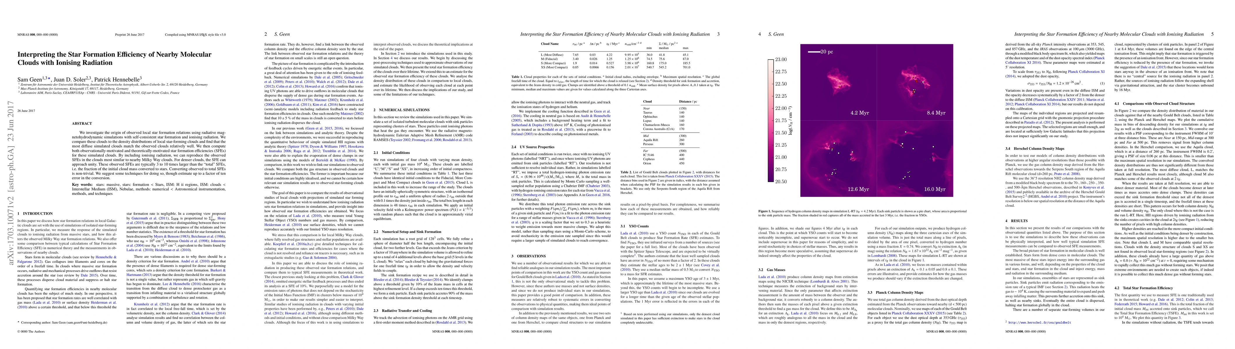 We investigate the origin of observed local star formation relations using radiative magnetohydrodynamic simulations with self-consistent star formation and ionising radiation. We compare these clouds to the density distributions of local star-forming clouds and find that the most diffuse simulated clouds match the observed clouds relatively well. We then compute both observationally-motivated and theoretically-motivated star formation efficiencies (SFEs) for these simulated clouds. By including ionising radiation, we can reproduce the observed SFEs in the clouds most similar to nearby Milky Way clouds. For denser clouds, the SFE can approach unity. These observed SFEs are typically 3 to 10 times larger than the "total" SFEs, i.e. the fraction of the initial cloud mass converted to stars. Converting observed to total SFEs is non-trivial. We suggest some techniques for doing so, though estimate up to a factor of ten error in the conversion.