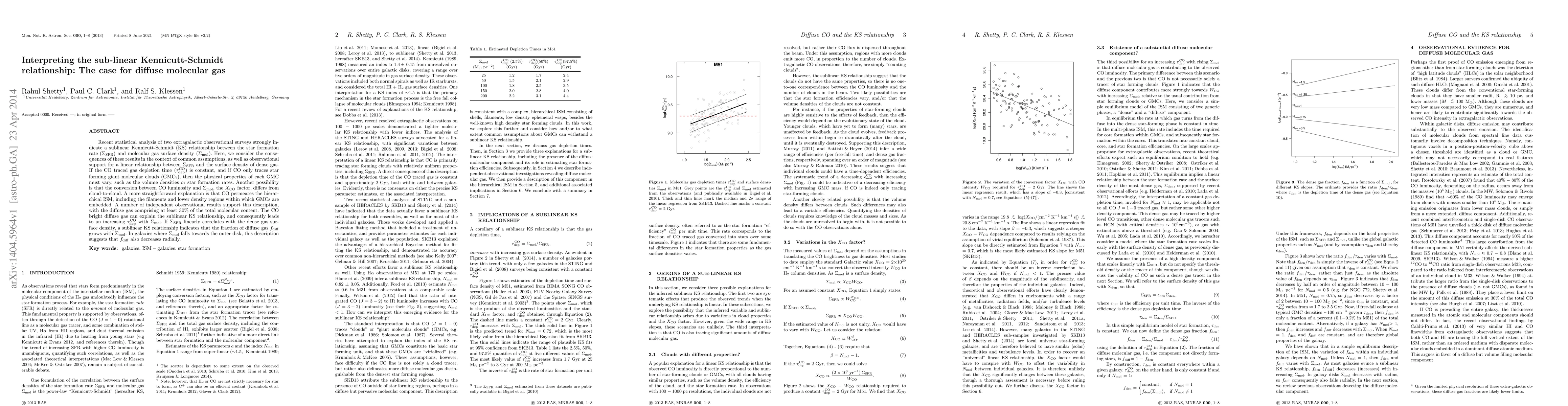 This paper argues that the sublinear Kennicutt-Schmidt relationship between star formation rate and molecular gas surface density can be explained by the presence of diffuse molecular gas, which constitutes at least 30% of the total molecular content and permeates the interstellar medium. This diffuse gas leads to an increasing gas depletion time with higher molecular gas surface density.