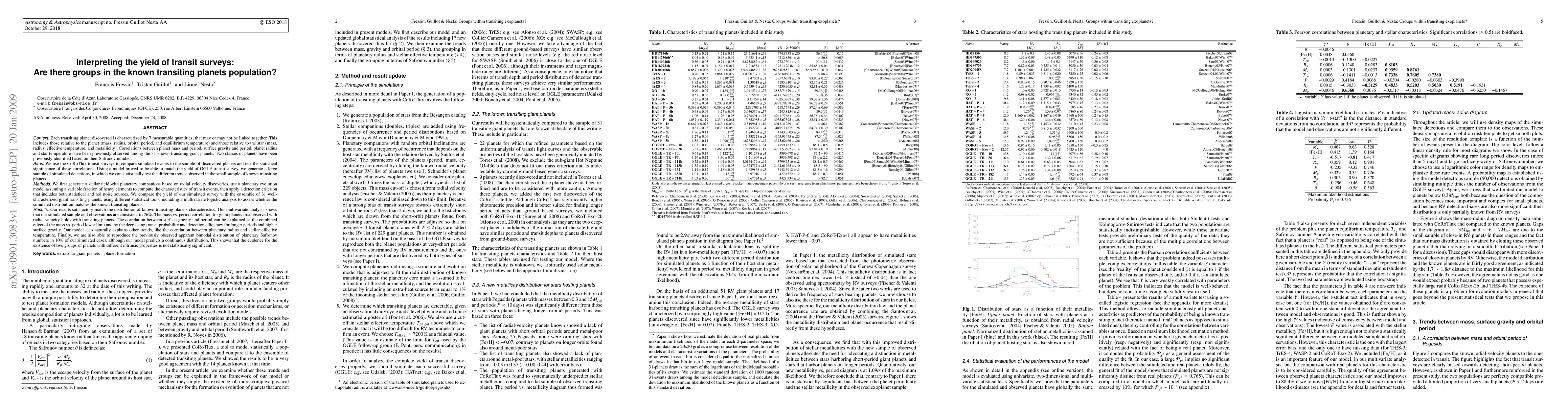 This paper investigates correlations among measurable properties of known transiting planets and tests whether distinct groups exist within this population. Using a simulation approach, the authors find that the observed correlations between planet mass/radius and stellar characteristics are consistent with a continuous distribution, suggesting no strong statistical evidence for two distinct groups of planets.