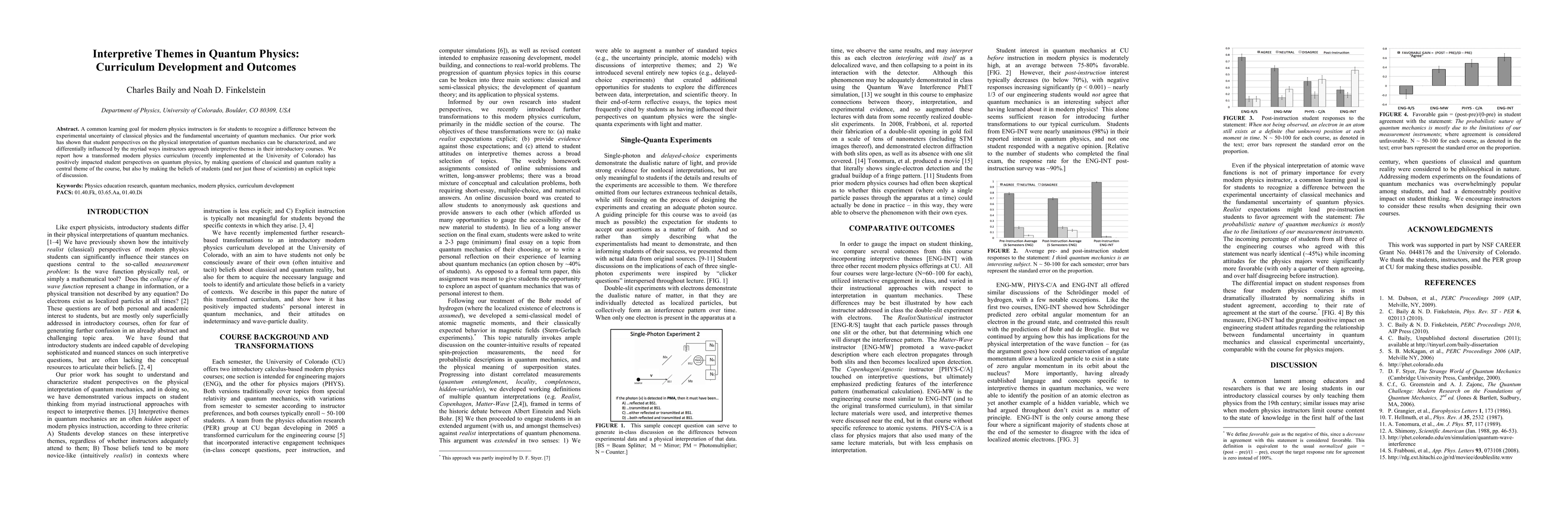 This paper discusses how a newly implemented modern physics curriculum at the University of Colorado has improved student understanding of quantum mechanics, emphasizing the fundamental uncertainty of quantum physics and incorporating students' beliefs into discussions. The curriculum's focus on interpretive themes has positively influenced student perspectives on quantum reality.