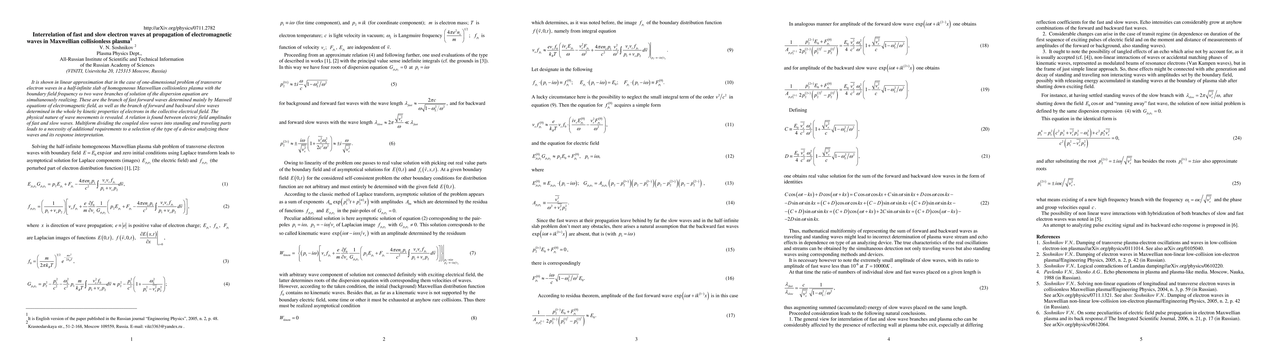 This paper investigates the linear interaction of fast and slow electron waves in a one-dimensional Maxwellian collisionless plasma, revealing two distinct wave branches: fast forward waves governed by electromagnetic field equations and slow forward and backward waves influenced by kinetic electron properties. It also establishes a relationship between the electric field amplitudes of these waves and discusses the implications for device selection and interpretation.