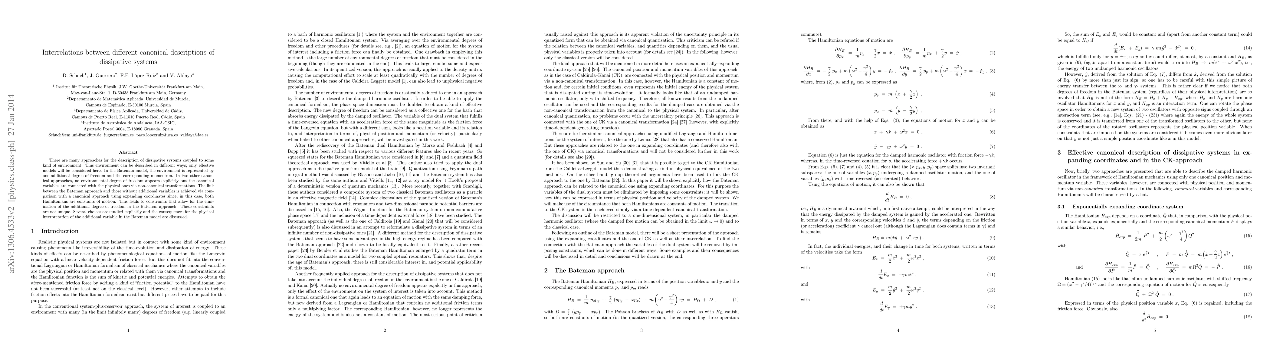 There are many approaches for the description of dissipative systems coupled to some kind of environment. This environment can be described in different ways; only effective models will be considered here. In the Bateman model, the environment is represented by one additional degree of freedom and the corresponding momentum. In two other canonical approaches, no environmental degree of freedom appears explicitly but the canonical variables are connected with the physical ones via non-canonical transformations. The link between the Bateman approach and those without additional variables is achieved via comparison with a canonical approach using expanding coordinates since, in this case, both Hamiltonians are constants of motion. This leads to constraints that allow for the elimination of the additional degree of freedom in the Bateman approach. These constraints are not unique. Several choices are studied explicitly and the consequences for the physical interpretation of the additional variable in the Bateman model are discussed.