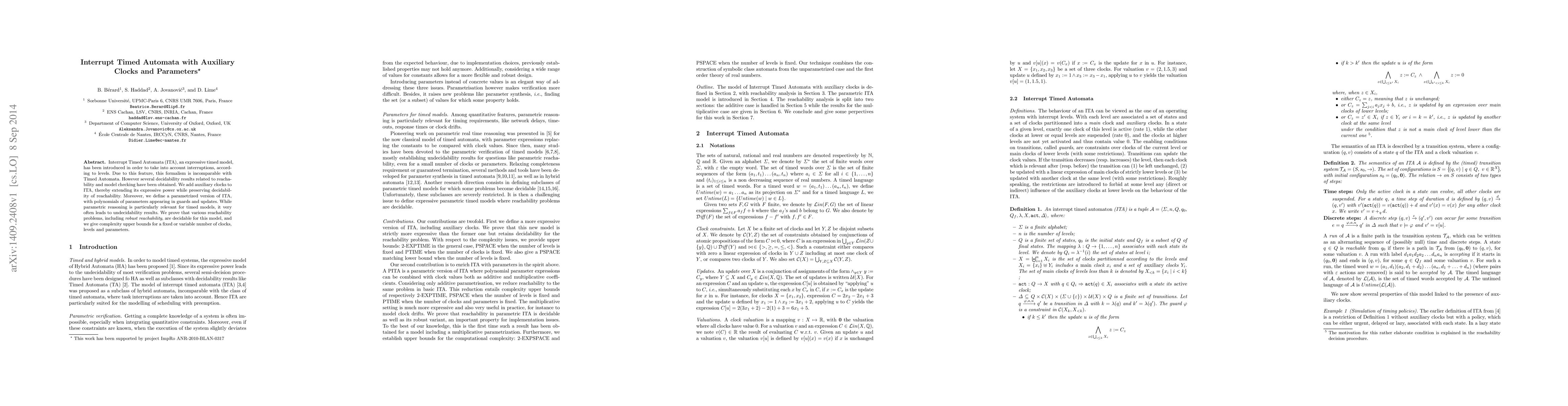 Interrupt Timed Automata (ITA) is an expressive timed model, introduced to take into account interruptions, according to levels. Due to this feature, this formalism is incomparable with Timed Automata. However several decidability results related to reachability and model checking have been obtained. We add auxiliary clocks to ITA, thereby extending its expressive power while preserving decidability of reachability. Moreover, we define a parametrized version of ITA, with polynomials of parameters appearing in guards and updates. While parametric reasoning is particularly relevant for timed models, it very often leads to undecidability results. We prove that various reachability problems, including "robust" reachability, are decidable for this model, and we give complexity upper bounds for a fixed or variable number of clocks, levels and parameters.